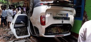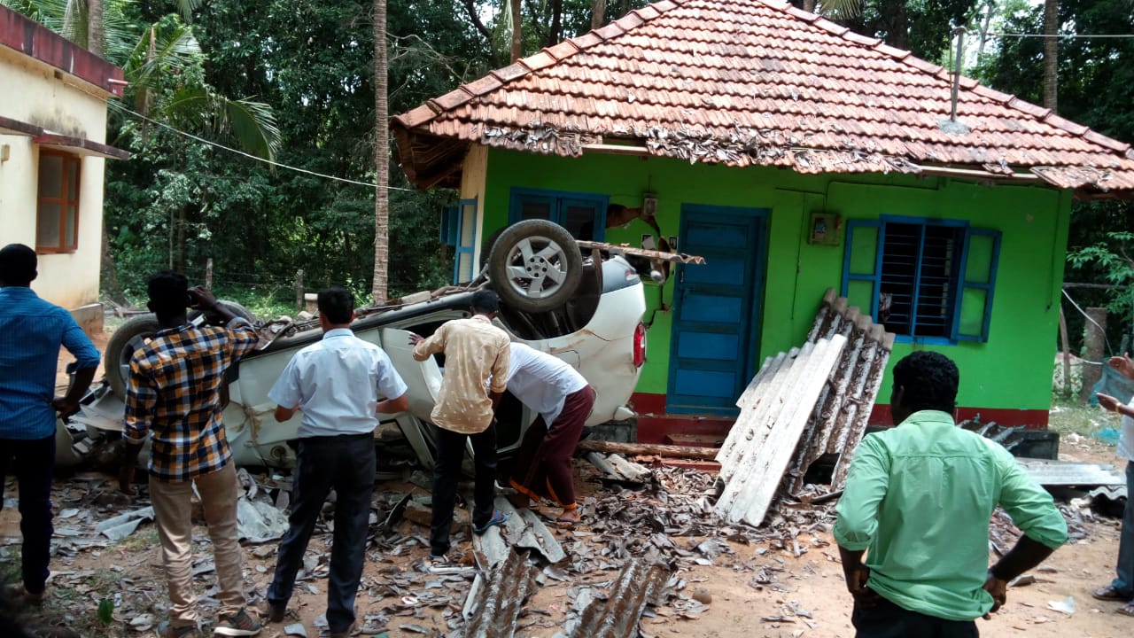 ಸುಬ್ರಹ್ಮಣ್ಯ ; ಚಾಲಕನ ನಿಯಂತ್ರಣ ತಪ್ಪಿ ಕಾರೊಂದು ಅರಣ್ಯ ಇಲಾಖೆ ವಸತಿ ಕಟ್ಟಡಕ್ಕೆ ಗುದ್ದಿ ಮಗುಚಿ ಬಿದ್ದ ಘಟನೆ ಕೊಂಬಾರು ಗ್ರಾಮ ಕೆಂಜಾಲದಲ್ಲಿ ನಡೆದಿದೆ. ಕಾರಿನಲ್ಲಿ ಪ್ರಯಾಣಿಸುತ್ತಿದ್ದವರು ಪವಾಡ ರೀತಿಯಲ್ಲಿ ಪಾರಾಗಿದ್ದಾರೆ. ಮಗುವಿಗೆ ಸ್ವಲ್ಪ ಗಾಯವಾಗಿದ್ದು ಅವರನ್ನು ಸುಬ್ರಹ್ಮಣ್ಯ ಆಸ್ಪತ್ರೆಗೆ ಆಂಬ್ಯುಲೆನ್ ಮೂಲಕ ಕೊಂಡೊಯ್ಯಲಾಗಿದೆ.
