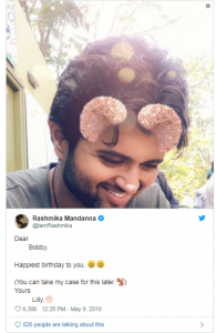 ಇವತ್ತು ತೆಲುಗಿನ ಚಾಕೋಲೇಟ್ ಹೀರೋ ವಿಜಯ್ ದೇವರ ಕೊಂಡಗೆ 30 ನೇ ವರ್ಷದ ಹುಟ್ಟುಹಬ್ಬದ ಸಂಭ್ರಮ. ಸದಾ ಯಂಗ್ ಅಂಡ್ ಎನರ್ಜೆಟಿಕ್ ರೋಲ್ಗಳಲ್ಲಿ ಕಾಣಿಸಿಕೊಂಡು ಅಪಾರ ನಾರಿಯರ ಮನಗೆದ್ದ ಲವರ್ ಬಾಯ್ಗೆ ಟಾಲಿವುಡ್ ಸೇರಿದಂತೆ ಹಲವು ಸಿನಿ ತಾರೆಯರು ಶುಭ ಹಾರೈಸುತ್ತಿದ್ದಾರೆ. ಇದೀಗ ಕನ್ನಡದ ಚೆಂದುಳ್ಳಿ ಚೆಲುವೆ ರಶ್ಮಿಕಾ ಮಂದಣ್ಣ ವಿಜಯ್ರ ಡಿಫ್ರೆಂಟಾಗಿ ಶುಭಕೋರಿದ್ದಾರೆ.