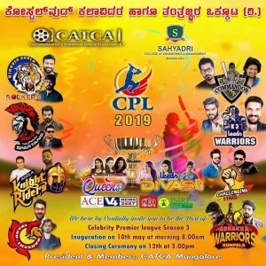 ಕೋಸ್ಟಲ್ವುಡ್ ಕಲಾವಿದರು ಮತ್ತು ತಂತ್ರಜ್ಞರ ತಂಡದ ಆಶ್ರಯದಲ್ಲಿ ಇಂದಿನಿಂದ 12ವರೆಗೆ ಸಹ್ಯಾದ್ರಿ ಎಂಜಿನಿಯರಿಂಗ್ ಕಾಲೇಜಿನ ಮೈದಾನದಲ್ಲಿ ‘ಸಿಪಿಎಲ್ ಕ್ರಿಕೆಟ್ ಪಂದ್ಯಾಟ’ ಆಯೋಜಿಸಲಾಗಿದೆ. ಈ ಬಾರಿ ಮಹಿಳಾ ಕ್ರಿಕೆಟಿಗರ ಎರಡು ತಂಡಗಳು ಪ್ರಮೋಷನಲ್ ಪಂದ್ಯ ಆಡಲಿವೆ.