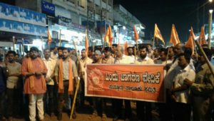 ಪುತ್ತೂರು : ಹಿಂದೂ ಜಾಗರಣಾ ವೇದಿಕೆ ವತಿಯಿಂದ ಪುತ್ತೂರು ಬಸ್ ನಿಲ್ದಾಣದ ಗಾಂಧಿ ಕಟ್ಟೆ ಬಳಿ ಸಂಜೆ ನೂರಾರು ಸಂಖ್ಯೆಯಲ್ಲಿ ಸೇರಿ ಹೊನ್ನಾವರದ ಪರೇಶ್ ಮೋಸ್ತ ಹತ್ಯೆಯನ್ನು ದೊಂದಿ ಹಿಡಿದು ಪ್ರತಿಭಟಿಸಿದ್ದಾರೆ.