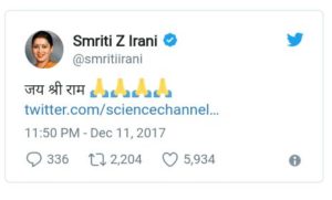 ಇನ್ನು ಈ ವರದಿ ಕುರಿತು ಟ್ವೀಟ್ ಮಾಡಿರುವ ಕೇಂದ್ರ ಸಚಿವೆ ಸ್ಮೃತಿ ಇರಾನಿ, ಜೈ ಶ್ರೀರಾಮ್ ಎಂದು ಸಂತಸ ವ್ಯಕ್ತಪಡಿಸಿದ್ದಾರೆ.