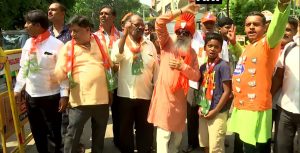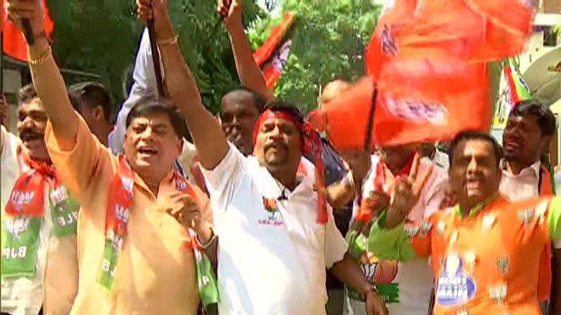 ಬೆಂಗಳೂರು: ಲೋಕಸಭೆ ಚುನಾವಣೆಯಲ್ಲಿ ಎನ್ಡಿಎ ಮೈತ್ರಿಕೂಟ ಭರ್ಜರಿ ಮುನ್ನಡೆ ಕಾಯ್ದುಕೊಂಡಿದೆ. ಮತ್ತೆ ಕೇಂದ್ರದಲ್ಲಿ ಅಧಿಕಾರ ಹಿಡಿಯುವ ಹುಮ್ಮಸ್ಸಿನಲ್ಲಿರುವ ಬಿಜೆಪಿ ನಾಯಕರಲ್ಲಿ ಸಂಭ್ರಮ ಮನೆ ಮಾಡಿದೆ. ಈಗಾಗಲೇ ಬಿಜೆಪಿ ಕಾರ್ಯಕರ್ತರು ಎಲ್ಲೆಡೆ ಸಂಭ್ರಮಾಚರಣೆಯಲ್ಲಿ ತೊಡಗಿದ್ದಾರೆ. ಬೆಂಗಳೂರಿನಲ್ಲಿ ಬಿಜೆಪಿ ಕಾರ್ಯಕರ್ತರ ಹರ್ಷೋದ್ಘಾರ ಮೇಳೈಸಿದೆ. ನಗರದ ಬಿಜೆಪಿ ಕಚೇರಿ ಬಳಿ ಪ್ರಧಾನಿ ಮೋದಿ ಹೆಸರನ್ನ ಕೂಗಿ ಬಿಜೆಪಿಗೆ ಜೈಕಾರ ಹಾಡುತ್ತಿದ್ದಾರೆ.