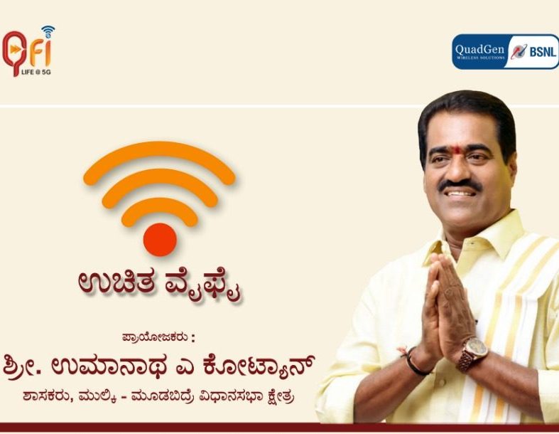 ಮೂಡಬಿದ್ರೆ: ಮೂಡಬಿದ್ರೆ ಮತ್ತು ಮುಲ್ಕಿ ವಿಧಾನ ಸಭಾ ಕ್ಷೇತ್ರದ ಜನಪ್ರಿಯ ಶಾಸಕ ಉಮನಾಥ್ ಎ ಕೋಟ್ಯಾನ್ ಅವರು ಸಾರ್ವಜನಿಕರಿಗೆ ಮೂಲಸೌಕರ್ಯಗಳ ಒಂದು ಭಾಗವಾಗಿ ಉಚಿತವಾದ ವೈ-ಫೈ ಸೇವೆಗೆ ಇಂದು ಚಾಲನೆ ನೀಡಿದರು. ಉಚಿತ ವೈ-ಫೈ ಸೇವೆಯು ಮೂಡಬಿದ್ರೆ, ಮುಲ್ಕಿ ಮತ್ತು ಬಜ್ಪೆಯಲ್ಲಿ ದೊರಕಲಿದೆ.
