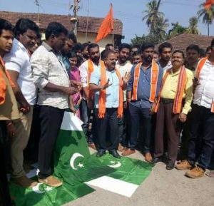 ಮಂಗಳೂರು : ಪಾಪಿ ಪಾಕಿಸ್ತಾನದ ಬಂಧನದಲ್ಲಿರುವ ಕುಲಭೂಷಣ್ ಯಾದವರವರನ್ನು ತಾಯಿ ಮತ್ತು ಹೆಂಡತಿ ನೋಡಲು ಪಾಕ್ ಜೈಲಿಗೆ ಹೋದಾಗ ಅವರನ್ನ ಅತ್ಯಂತ ಅಮಾನುಷವಾಗಿ ನಡೆಸಿಕೊಂಡ ಕೃತ್ಯವನ್ನು ಖಂಡಿಸಿ ಇಂದು ನಗರದ ಕದ್ರಿ ಮಲ್ಲಿಕಟ್ಟೆಯ ಬಳಿ ಪಾಕಿಸ್ತಾನದ ಧ್ವಜ ಸುಡುವ ಮೂಲಕ ವಿಶ್ವ ಹಿಂದೂ ಪರಿಷದ್ ಬಜರಂಗದಳ ಪ್ರತಿಭಟಿಸಿದೆ.