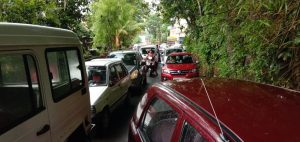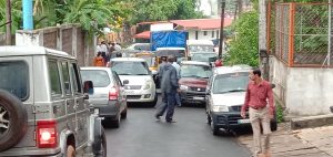 ಇಲ್ಲಿನ ರಸ್ತೆಯೂ ಕಿರಿದಾಗಿದ್ದರಿಂದ ಒಂದು ಬದಿಯಿಂದ ಮಾತ್ರ ವಾಹನ ಹೋಗುವ ಸ್ಥಿತಿ ನಿರ್ಮಾಣವಾಯಿತು. ಆದರೆ ಈ ಮಧ್ಯೆ ಸಮಾರಂಭಕ್ಕೆ ತಡವಾಗುತ್ತದೆ ಎಂಬ ಧಾವಂತದಿಂದ, ನಡುವೆ ನುಗ್ಗುವ ವಾಹನಗಳಿಂದಾಗಿ ಸುಮಾರು ಹೊತ್ತಿನವರೆಗೆ ವಾಹನ ಸವಾರರು ಮತ್ತು ನಡೆದು ಹೋಗುವ ಜನರು ಪರದಾಡುವ ಪರಿಸ್ಥಿತಿ ಉಂಟಾಯಿತು. ಈ ಮಧ್ಯೆ ರಸ್ತೆ ಬದಿಯಲ್ಲಿ ನಿಲ್ಲಿಸಲಾಗಿದ್ದ ಕಾರುಗಳ ಮೇಲೆ ಟ್ರಾಫಿಕ್ ಪೊಲೀಸರು ದಂಡ ಹಾಕುತ್ತಿರುವುದು ಕಂಡು ಬಂದಿತು.