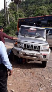 ಬಂಟ್ವಾಳ : ವಾಹನವೊಂದನ್ನು ಒವರ್ ಟೇಕ್ ಮಾಡುವ ಭರದಲ್ಲಿ ಪೋಲೀಸ್ ಜೀಪ್ಗೆ ಬೈಕ್ ಸವಾರ ಡಿಕ್ಕಿ ಹೊಡೆದು ಅಲ್ಪಸ್ವಲ್ಪ ಗಾಯಗಳಾಗಿ ಆಸ್ಪತ್ರೆಗೆ ದಾಖಲಾದ ಘಟನೆ ಕಲ್ಲಡ್ಕ ಸಮೀಪದ ನರಹರಿ ಪರ್ವತದ ಬಳಿ ನಡೆದಿದೆ.