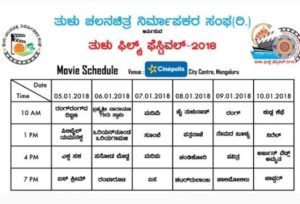 ಮಂಗಳೂರು: ತುಳು ಚಲನಚಿತ್ರ ನಿರ್ಮಾಪಕರ ಸಂಘದ ವತಿಯಿಂದ ತುಳು ಫಿಲ್ಮ್ ಫೆಸ್ಟಿವಲ್ ಜನವರಿ 5 ರಿಂದ 11 ರ ವರೆಗೆ ಹಮ್ಮಿಕೊಳ್ಳಲಾಗಿದೆ.