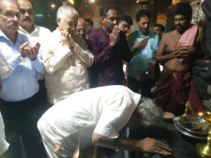 ಮಂಗಳೂರು : ಕುದ್ರೋಳಿ ಶ್ರೀ ಗೋಕರ್ಣನಾಥ ಕ್ಷೇತ್ರಕ್ಕೆ ಇಂದು ಸಂಜೆ ಮಾಜಿ ಕೇಂದ್ರ ಸಚಿವ ಹಾಗೂ ಮಂಗಳೂರು ದಸರಾ ರೂವಾರಿ ಜನಾರ್ಧನ ಪೂಜಾರಿ ಭೇಟಿ ನೀಡಿ ದೇವರ ದರ್ಶನ ಪಡೆದರು. ದೇವರಿಗೆ ವಿಶೇಷ ಪೂಜೆ ಸಲ್ಲಿಸಿದರು .