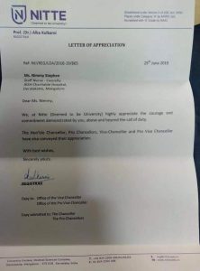 ಮಂಗಳೂರು: ದೇರಳಕಟ್ಟೆಯಲ್ಲಿ ನಡೆದ ಯುವತಿಯ ಕೊಲೆ ಯತ್ನ ಪ್ರಕರಣದಲ್ಲಿ, ಯುವತಿ ಹಾಗೂ ಯುವಕನನ್ನು ರಕ್ಷಣೆ ಮಾಡಲು ಯಾರೂ ಮುಂದೆ ಬಂದಿರಲಿಲ್ಲ. ಸುಮಾರು ಅರ್ಧ ಗಂಟೆಗೂ ಅಧಿಕ ಕಾಲ ಅನೇಕರು ಕೇವಲ ಮೊಬೈಲ್ ನಲ್ಲಿ ವಿಡಿಯೋ ತೆಗೆಯುದರಲ್ಲೆ ನಿರತರಾಗಿದ್ದರು. ರಕ್ತದ ಮಡುವಿನಲ್ಲಿ ಬಿದ್ದಿದ್ದ ಅವರನ್ನು ರಕ್ಷಣೆ ಮಾಡಲು ಈ ಸಂಧರ್ಭ ಮುಂದೆ ಬಂದವರು ನರ್ಸ್ ನಿಮ್ಮಿ ಸ್ಟೀಫನ್. ಇವರು ಕೇರಳದ ಪಯ್ಯಾವೂರ್ನವರಾಗಿದ್ದು, ಇವರ ಈ ಮಾನವೀಯತೆ ಕಾರ್ಯಕ್ಕೆ ನಿಟ್ಟೆ ಇನ್ಷ್ಟಿಟ್ಯೂಟ್ ಆಫ್ ಮ್ಯಾನೇಜ್ಮೆಂಟ್ ಅವರು ಅಭಿನಂದಿಸಿದೆ.