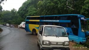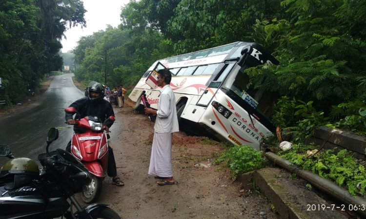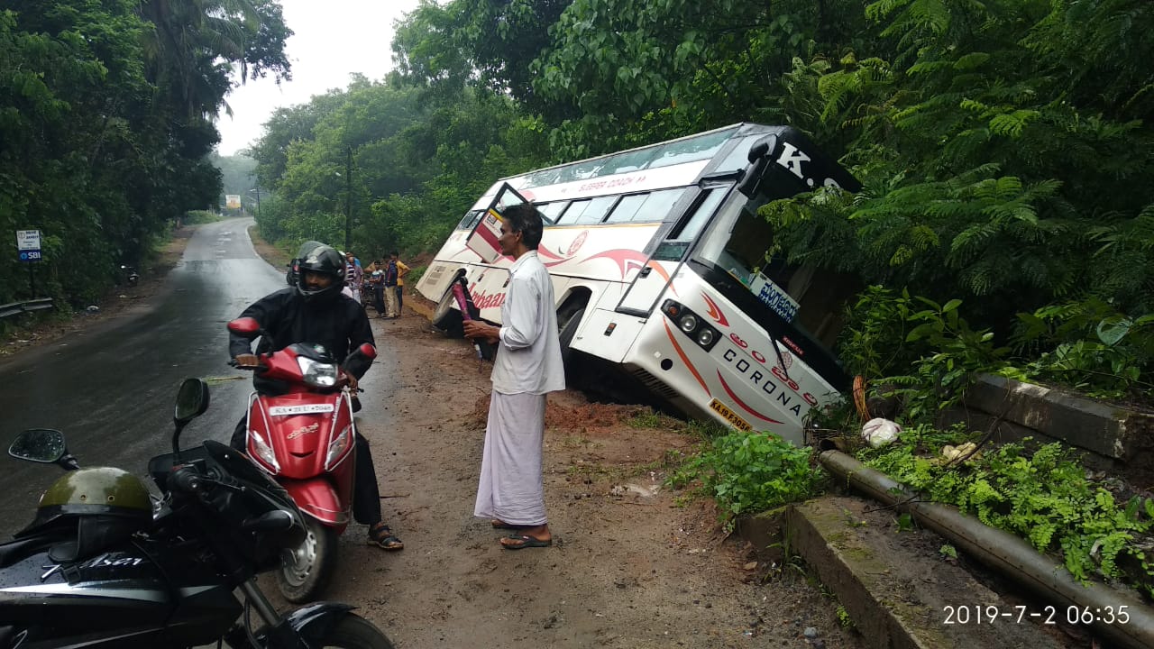 ಮಂಗಳೂರು – ಪುತ್ತೂರು ರಾಜ್ಯ ಹೆದ್ದಾರಿಯಲ್ಲಿ ಬರುವ ಮಿತ್ತೂರು ಎಂಬಲ್ಲಿ ಇಂದು ಬೆಳಗ್ಗೆ ನಸುಕಿನ ವೇಳೆ, ಬೆಂಗಳೂರಿನಿಂದ ಮಂಗಳೂರಿಗೆ ಆಗಮಿಸುತ್ತಿದ್ದ ಐರಾವತ ಮತ್ತು ಶ್ರೀ ಕುಮಾರ್ ಖಾಸಗಿ ಬಸ್ಸು, ಚಾಲಕರ ನಿಯಂತ್ರಣ ತಪ್ಪಿ ಗುಂಡಿಗೆ ಬಿದ್ದು ಒಂದು ಬದಿಗೆ ವಾಲಿ ನಿಂತಿದೆ.