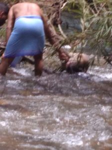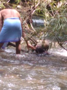 ಮಗುವನ್ನು ಹೊತ್ತುಕೊಂಡು ಓಡುತ್ತಿದ್ದ ವ್ಯಕ್ತಿಯ ಹಿಂದೆಯೇ ತನ್ನ ಗಂಡು ಮಗುವನ್ನು ಎತ್ತಿಕೊಂಡು ಓಡಿದ್ದೆ. ಅಪರಿಚಿತ ದುಷ್ಕರ್ಮಿಯನ್ನು ಹಿಂಬಾಲಿಸಿಕೊಂಡು ಹೋಗುವ ವೇಳೆ ಕತ್ತಲು ಇದ್ದ ಕಾರಣ ಗೊತ್ತಾಗದೆ ಹೊಳೆಗೆ ತಾನು ಬಿದ್ದಿದ್ದು, ನೀರಿನ ಸೆಳೆತಕ್ಕೆ ಕೊಚ್ಚಿ ಹೋಗಿ ಅದೃಷ್ಟವಶಾತ್ ಕೆಳಗಡೆ ದಡ ಸೇರಿರುವುದಾಗಿ ಹೇಳಿ ಸ್ಥಳೀಯರನ್ನು ಈಕೆ ನಂಬಿಸಿದ್ದಳು. ಇದೇ ಸುದ್ಧಿಯನ್ನು ಗ್ರಾಮಸ್ಥರು ಪೊಲೀಸರಿಗೆ ಹಾಗೂ ಮಾಧ್ಯಮಗಳಿಗೆ ಹೇಳಿಕೆ ಕೊಟ್ಟಿದ್ದರು.