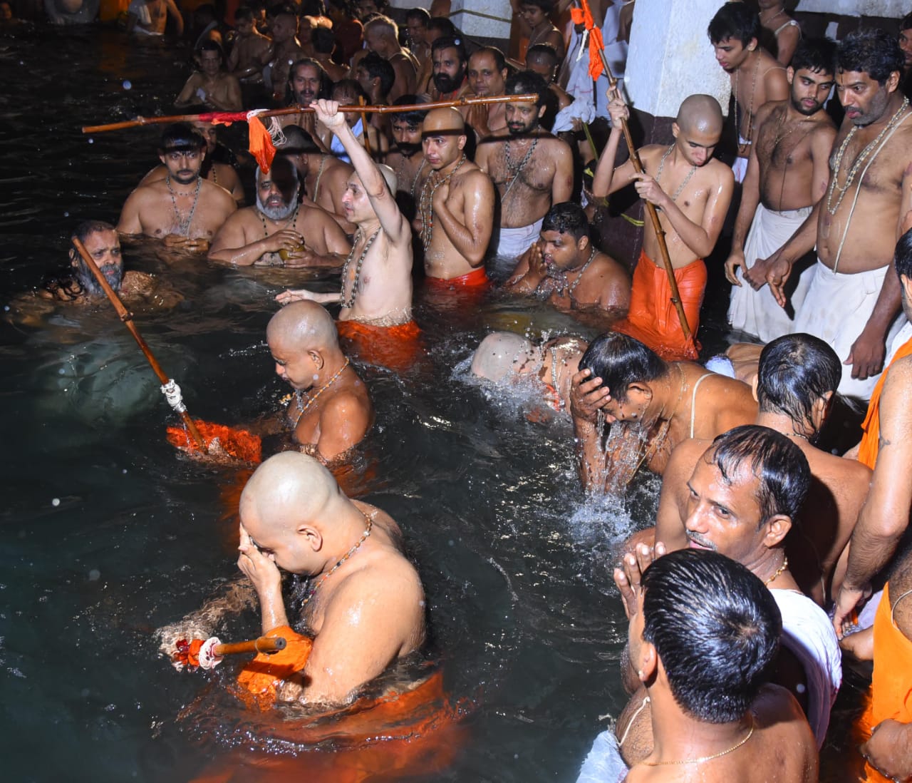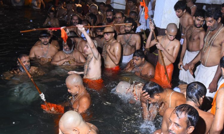 ಉಡುಪಿ : ಶ್ರೀ ಕೃಷ್ಣ ಮಠದ ಮಧ್ವ ಸರೋವರದಲ್ಲಿ, ಚಂದ್ರ ಗ್ರಹಣ ಪ್ರಯುಕ್ತ ಗ್ರಹಣ ಸ್ಪರ್ಶಕಾಲದಲ್ಲಿ, ಪರ್ಯಾಯ ಪಲಿಮಾರು ಶ್ರೀ ವಿದ್ಯಾಧೀಶ ತೀರ್ಥ ಶ್ರೀಪಾದರು, ಕೃಷ್ಣಾಪುರ ಮಠಾಧೀಶರಾದ ಶ್ರೀ ವಿದ್ಯಾಸಾಗರತೀರ್ಥ ಶ್ರೀಪಾದರು, ಪೇಜಾವರ ಕಿರಿಯ ಮಠಾಧೀಶರಾದ ಶ್ರೀ ವಿಶ್ವಪ್ರಸನ್ನ ತೀರ್ಥ ಶ್ರೀಪಾದರು, ಕಾಣಿಯೂರು ಮಠಾಧೀಶರಾದ ಶ್ರೀ ವಿದ್ಯಾವಲ್ಲಭತೀರ್ಥ ಶ್ರೀಪಾದರು, ಸೋದೆ ಮಠಾಧೀಶರಾದ ಶ್ರೀ ವಿಶ್ವವಲ್ಲಭ ತೀರ್ಥ ಶ್ರೀಪಾದರು, ಅದಮಾರು ಕಿರಿಯ ಮಠಾಧೀಶರಾದ ಶ್ರೀ ಈಶಪ್ರಿಯ ತೀರ್ಥ ಶ್ರೀಪಾದರು ಹಾಗೂ ಪಲಿಮಾರು ಕಿರಿಯ ಮಠಾಧೀಶರಾದ ಶ್ರೀ ವಿದ್ಯಾರಾಜೇಶ್ವರ ತೀರ್ಥ ಶ್ರೀಪಾದರು, ಸ್ನಾನ ಮಾಡಿ ಗ್ರಹಣ ಕಾಲದಲ್ಲಿ ಜಪಾನುಷ್ಠಾನ ಮಾಡಿ ಕೃಷ್ಣ ದೇವರ ವಿಶೇಷ ಪೂಜೆ ನಡೆಸಿದರು. ಈ ಸಂದರ್ಭದಲ್ಲಿ ಅಧಿಕ ಸಂಖ್ಯೆಯಲ್ಲಿ ಭಕ್ತಾಧಿಗಳು ಆಗಮಿಸಿ ಸ್ನಾನ ಮಾಡಿ ಜಪ ಪಾರಾಯಣಾದಿಗಳನ್ನು ಮಾಡಿದರು.