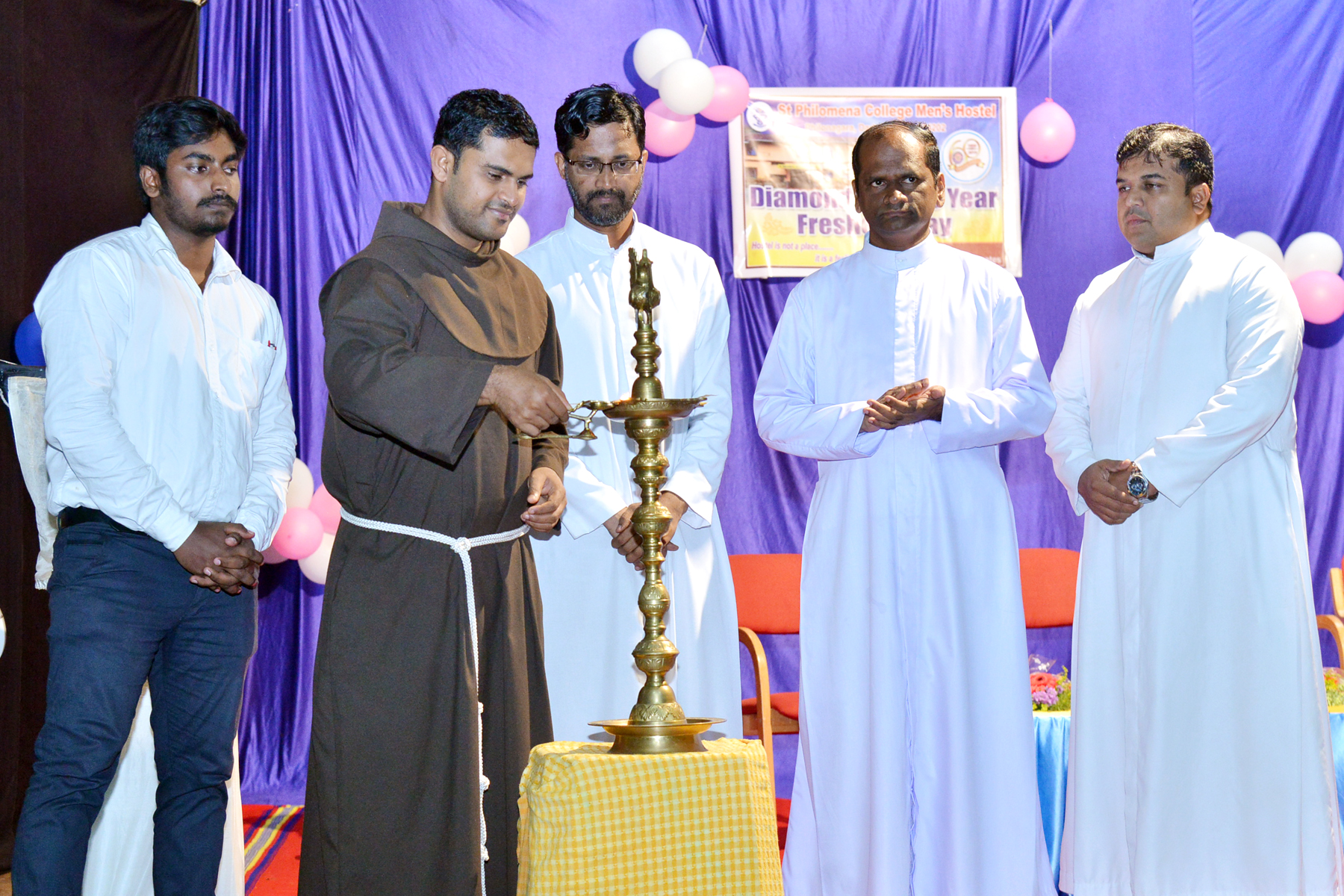 ಸಂತ ಫಿಲೋಮಿನಾ ಕಾಲೇಜಿನ ಪುರುಷರ ವಸತಿ ನಿಲಯದಲ್ಲಿ ಪ್ರಸಕ್ತ ಶೈಕ್ಷಣಿಕ ವರ್ಷದಲ್ಲಿ ಹೊಸತಾಗಿ ದಾಖಲಾತಿ ಹೊಂದಿದ ವಿದ್ಯಾರ್ಥಿಗಳನ್ನು ಸ್ವಾಗತಿಸುವ ‘ಫ್ರೆಶರ್ಸ್ ಡೇ’ ಮತ್ತು ವಸತಿನಿಲಯದ ವಜ್ರಮಹೋತ್ಸವ ಆಚರಣೆ ಕಾರ್ಯಕ್ರಮವನ್ನು ಜುಲೈ 20ರಂದು ಕಾಲೇಜಿನ ಬೆಳ್ಳಿ ಹಬ್ಬ ಸಭಾಂಗಣದಲ್ಲಿ ಉದ್ಘಾಟಿಸಿ, ಮಾತನಾಡಿದರು.