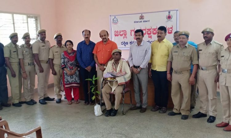 ಬಂಟ್ವಾಳ: ಇಂದು ಜಿಲ್ಲಾ ಗೃಹರಕ್ಷಕದಳ ಕಚೇರಿಯಲ್ಲಿ ಬಂಟ್ವಾಳ ಘಟಕದ ಗೃಹರಕ್ಷಕ ಶಿವಶೆಟ್ಟಿಗಾರ್ ಇವರನ್ನು ದ.ಕ ಜಿಲ್ಲಾ ಕಮಾಡೆಂಟ್ ಡಾ|| ಮುರಲೀ ಮೋಹನ್ ಚೂಂತಾರು ಸನ್ಮಾನಿಸಿದರು.