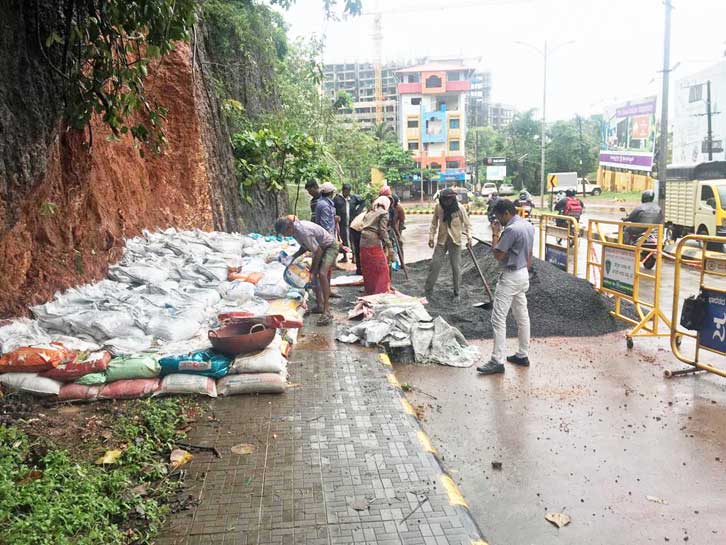 ಗುಡ್ಡದ ಕೆಳಗಿರುವ ಮನೆಗಳಿಗೆ ಅಪಾಯದ ಬಗ್ಗೆ ಸೂಚಿಸಲಾಗಿದೆ. ಮಳೆ ಹೆಚ್ಚಾದಂತೆ ಮಣ್ಣು ಕುಸಿಯುವ ಸಂಭವವಿದೆ. ಸ್ಥಳಕ್ಕೆ ತಹಶೀಲ್ದಾರ್ ಗುರು ಪ್ರಸಾದ್ ಭೇಟಿ ನೀಡಿ, ಪರಿಶೀಲಿಸಿ, ಅಗತ್ಯ ಕ್ರಮಕ್ಕೆ ಸೂಚನೆ ನೀಡಿದ್ದಾರೆ. ನೀರಿನ ಒರತೆ ಜಾಸ್ತಿಯಾಗಿದ್ದು, ಮಣ್ಣು ಕುಸಿತ ಕಂಡ ಪ್ರದೇಶದ ಕೆಳಗಡೆಯೂ ಕುಸಿಯಲು ಆರಂಭವಾಗಿದೆ. ತಾತ್ಕಾಲಿಕ ಪರಿಹಾರಕ್ಕೆ ಮರಳುತುಂಬಿದ ಗೋಣಿಯನ್ನು ಇಡಲಾಗಿದೆ. ಮಳೆ ಕಡಿಮೆಯಾದ ಅನಂತರ ಶಾಶ್ವತ ಪರಿಹಾರವಾಗಿ ತಡೆಗೋಡೆ ನಿರ್ಮಾಣಕ್ಕೆ ಸುಮಾರು 25ಲಕ್ಷ ರೂ. ಬೇಕಾಗುತ್ತದೆ ಎಂದು ಲೋಕಪಯೋಗಿ ಇಲಾಖೆಯ ಸಹಾಯಕ ಎಂಜಿನಿಯರ್ ಗೋಪಾಲ ಹೇಳಿದ್ದಾರೆ.