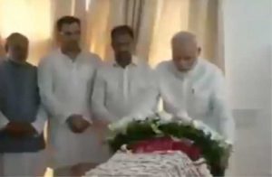 ನವದೆಹಲಿ: ಕೇಂದ್ರದ ಮಾಜಿ ವಿದೇಶಾಂಗ ಸಚಿವೆ, ಬಿಜೆಪಿ ಹಿರಿಯ ನಾಯಕಿ ಸುಷ್ಮಾ ಸ್ವರಾಜ್ ಅವರು ಮಂಗಳವಾರ ರಾತ್ರಿ ನಿಧನ ಹೊಂದಿದ್ದಾರೆ. ಇಂದು ಬೆಳಗ್ಗೆ ಪ್ರಧಾನಿ ನರೇಂದ್ರ ಮೋದಿ, ಸುಷ್ಮಾ ಸ್ವರಾಜ್ ಅವರ ಪಾರ್ಥೀವ ಶರೀರದ ಅಂತಿಮ ದರ್ಶನ ಪಡೆದರು. ಈ ವೇಳೆ ಪ್ರಧಾನಿ ಭಾವುಕರಾಗಿ ಗದ್ಗದಿತರಾದರು.