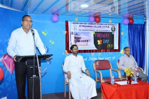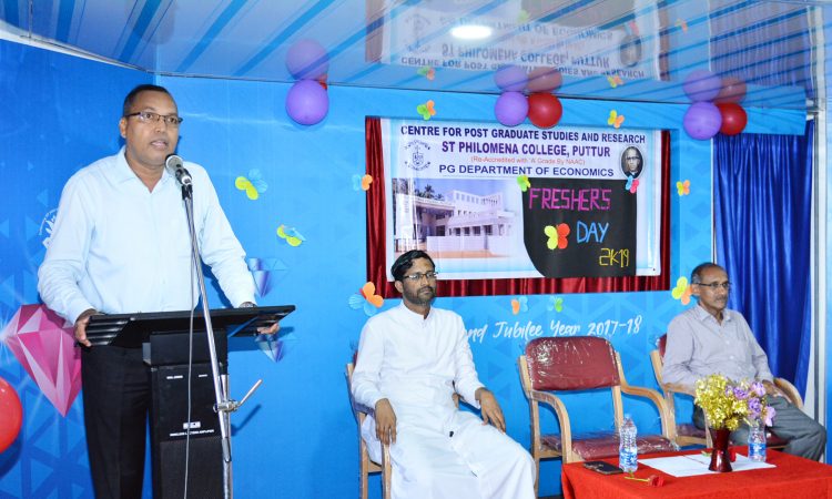 ಕಾಲೇಜಿನ ಅರ್ಥಶಾಸ್ತ್ರ ಸ್ನಾತಕೋತ್ತರ ವಿಭಾಗದ ಆಶ್ರಯದಲ್ಲಿ ಆಗಸ್ಟ್ 6 ರಂದು ಪ್ರಥಮ ವರ್ಷದ ವಿದ್ಯಾರ್ಥಿಗಳಿಗೆ ಸ್ನಾತಕೋತ್ತರ ಸಭಾಂಗಣದಲ್ಲಿ ಆಯೋಜಿಸಲಾದ ಫ್ರೆಶರ್ಸ್ ಡೇ ಕಾರ್ಯಕ್ರಮದಲ್ಲಿ ಅಧ್ಯಕ್ಷತೆ ವಹಿಸಿ, ಮಾತನಾಡಿದರು. ಅರ್ಥಶಾಸ್ತ್ರಜ್ಞರಿಗೆ ವಿಶ್ವ ಮಟ್ಟದಲ್ಲಿಯೂ ಬೇಡಿಕೆಯಿದೆ. ಮೈಸೂರು ಮೂಲದ ಅರ್ಥಶಾಸ್ತ್ರಜ್ಞೆ ಗೀತಾ ಗೋಪಿನಾಥ್ ಅಂತರ್ರಾಷ್ಟ್ರೀಯ ಹಣಕಾಸು ಸಂಸ್ಥೆಯಾದ ಐಎಮ್ಎಫ್ನಲ್ಲಿ ಉನ್ನತ ಸ್ಥಾನವನ್ನು ಅಲಂಕರಿಸುವುದು ನಮಗೆಲ್ಲರಿಗೂ ಹೆಮ್ಮೆಯ ಸಂಗತಿ. ಜ್ಞಾನ ಸಂಪತ್ತು ಮತ್ತು ಜೀವನ ಮೌಲ್ಯಗಳು ಮಾನವನ ಭವಿಷ್ಯದ ದಿಕ್ಕನ್ನು ನಿರ್ಧರಿಸಬಲ್ಲವು. ಸಂಸ್ಥೆಯ ನೀತಿ ನಿಬಂಧನೆಗಳನ್ನು ಪಾಲಿಸುವುದರೊಂದಿಗೆ ಗುಣಾತ್ಮಕ ಶಿಕ್ಷಣದ ಪ್ರಯೋಜನವನ್ನು ಪಡೆದುಕೊಳ್ಳಬೇಕು ಎಂದರು.