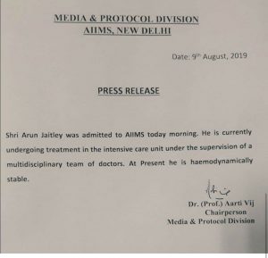 Big Breaking News : ಅರುಣ್ ಜೇಟ್ಲಿ ಆಸ್ಪತ್ರೆಗೆ ದಾಖಲು ; ಚಿಂತಾಜನಕ ಸ್ಥಿತಿಯಲ್ಲಿ ಬಿಜೆಪಿ ಹಿರಿಯ ಮುಖಂಡ – ಕಹಳೆ ನ್ಯೂಸ್
