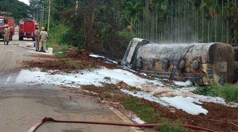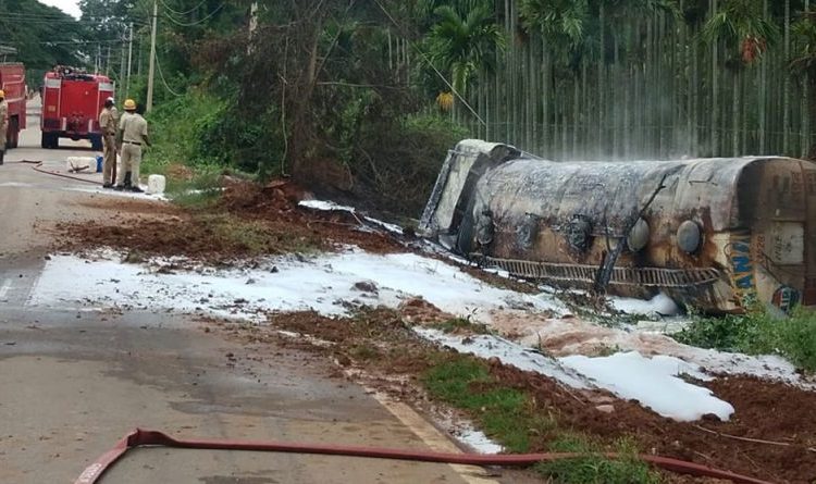 ಪರಿಣಾಮವಾಗಿ ಟ್ಯಾಂಕರ್ ನಲ್ಲಿದ್ದ ಆಯಿಲ್ ಸೋರಿಕೆಯಾಗಿದ್ದು, ಇದೇ ವೇಳೆ ಶಾರ್ಟ್ ಸಕ್ರ್ಯೂಟ್ನಿಂದಾಗಿ ಬೆಂಕಿ ಹೊತ್ತಿಕೊಂಡ ಪರಿಣಾಮ ಲಾರಿ ಸಂಪೂರ್ಣ ಹೊತ್ತಿ ಉರಿದಿದೆ. ವಿದ್ಯುತ್ ಕಂಬಕ್ಕೆ ಡಿಕ್ಕಿ ಹೊಡೆದಾಗ ಚಾಲಕ ಕೆಳಗೆ ಬಿದ್ದಿದ್ದರಿಂದ ಅದೃಷ್ಟವಶಾತ್ ಪ್ರಾಣಾಪಾಯದಿಂದ ಪಾರಾಗಿದ್ದಾನೆ.