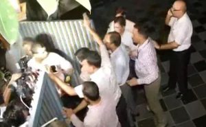 ಎಐಸಿಸಿ ಕಚೇರಿಯಲ್ಲಿ ಚಿದಂಬರಂ ಅವರು ಆಗಮಿಸುವ ಮುನ್ನವೇ ಪಕ್ಷದ ಕಾರ್ಯಕರ್ತರು ಸಾಕಷ್ಟು ಸಂಖ್ಯೆಯಲ್ಲಿ ಜಮಾವಣೆಯಾಗಿದ್ದರು. ಅಲ್ಲದೇ ಚಿದಂಬರಂ ಅವರು ಕಾಂಗ್ರೆಸ್ ಕಚೇರಿಯಲ್ಲಿ ಪ್ರತ್ಯಕ್ಷರಾಗುತ್ತಿದಂತೆ ಇಡಿ ಹಾಗೂ ಸಿಬಿಐ ಅಧಿಕಾರಿಗಳು ಕಚೇರಿಯತ್ತ ದೌಡಾಯಿಸಿದ್ದರು. ಆದರೆ ಅಧಿಕಾರಿಗಳು ಕಚೇರಿಯ ಒಳಗೆ ತೆರಳದಂತೆ ಪಕ್ಷದ ಕಾರ್ಯಕರ್ತರು ಮುಖ್ಯ ಬಾಗಿಲನ್ನು ಬಂದ್ ಮಾಡಿ ಪ್ರತಿಭಟನೆ ನಡೆಸಿದರು. ಇದು ಕಾಂಗ್ರೆಸ್ ಪಕ್ಷದ ಕಚೇರಿ ಎದುರು ಹೈಡ್ರಾಮಕ್ಕೆ ಕಾರಣವಾಗಿತ್ತು. ಕಾಂಗ್ರೆಸ್ ಪಕ್ಷದ ಎದುರು ಹೈಡ್ರಾಮ ನಡೆಯುತ್ತಿದ್ದರೆ ಸುದ್ದಿಗೋಷ್ಠಿ ನಡೆಸಿ ಬಳಿಕ ನೇರ ಚಿದಂಬರಂ ಅವರು ತಮ್ಮ ನಿವಾಸಕ್ಕೆ ತೆರಳಿದರು.