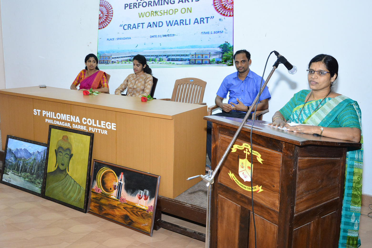 ಕಾಲೇಜಿನ ಲಲಿತ ಕಲೆಗಳ ಸಂಘ ಮತ್ತು ರಂಗ ಕಲೆಗಳ ಸಂಘದ ಆಶ್ರಯದಲ್ಲಿ ಆಗಸ್ಟ್ 31ರಂದು ಸ್ಪಂದನ ಸಭಾಭವನದಲ್ಲಿ ಕ್ರಾಫ್ಟ್ ಮತ್ತು ವರ್ಲಿ ಆರ್ಟ್ ಕುರಿತು ವಿದ್ಯಾರ್ಥಿಗಳಿಗೆ ಆಯೋಜಿಸಲಾದ ಕಾರ್ಯಾಗಾರದಲ್ಲಿ ಮುಖ್ಯ ಅತಿಥಿಯಾಗಿ ಭಾಗವಹಿಸಿ, ಮಾತನಾಡಿದರು. ವರ್ಲಿ ಆರ್ಟ್ ಅನ್ನುವ ಈ ಕಲಾ ಪ್ರಕಾರವು ಮಹಾರಾಷ್ಟ್ರದಲ್ಲಿ 1970ರ ದಶಕದಲ್ಲಿ ವ್ಯವಸ್ಥಿತವಾಗಿ ಆರಂಭಗೊಂಡಿತು. ಇದರಲ್ಲಿ ವೃತ್ತಾಕಾರ, ತ್ರಿಕೋನಕಾರ, ಚದರಾಕಾರ ಮುಂತಾದವುಗಳನ್ನು ಒಳಗೊಂಡಿದೆ. ವೃತ್ತಾಕಾರವು ಸೂರ್ಯ ಚಂದ್ರನನ್ನು ಬಿಂಬಿಸಿದರೆ, ತ್ರಿಕೋನಾಕೃತಿಯು ಪರ್ವತ ಗಿಡ ಮರಗಳನ್ನು ಸಂಕೇತಿಸುತ್ತದೆ. ಚದರಾಕೃತಿಯು ಮಾನವನ ಆವಿಷ್ಕಾರಗಳನ್ನು ಬಿಂಬಿಸುತ್ತದೆ. ವಿದ್ಯಾರ್ಥಿಗಳು ತಮ್ಮ ಬಿಡುವಿನ ಸಮಯದಲ್ಲಿ ಇಂತಹ ಅರ್ಥಗರ್ಭಿತವಾದ ಚಿತ್ರ ರಚನೆಯಲ್ಲಿ ಪಾಲ್ಗೊಳ್ಳಬೇಕು. ಇದರಿಂದ ಬದುಕಿಗೆ ಅಗತ್ಯವಿರುವ ಏಕಾಗ್ರತೆ ಮತ್ತು ನೆಮ್ಮದಿ ಸಿಗುತ್ತದೆ.
