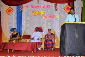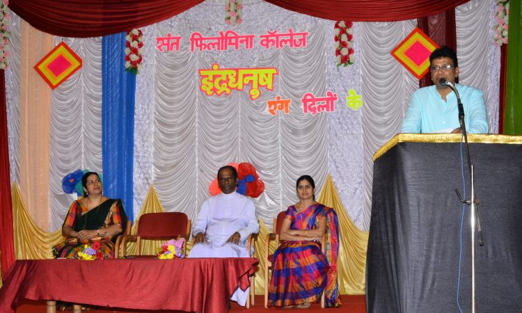 ಸಂತ ಫಿಲೋಮಿನಾ ಕಾಲೇಜಿನ ಹಿಂದಿ ವಿಭಾಗದ ಆಶ್ರಯದಲ್ಲಿ ಹಿಂದಿ ದಿವಸ್ ಅಂಗವಾಗಿ ಸೆಪ್ಟಂಬರ್ 5ರಂದು ಕಾಲೇಜಿನ ಬೆಳ್ಳಿ ಹಬ್ಬ ಸಬಾಂಗಣದಲ್ಲಿ ಹಮ್ಮಿಕೊಂಡಿರುವ ‘ಇಂದ್ರಧನುಷ್-2019’ ಸ್ಪರ್ಧೋತ್ಸವವನ್ನು ಉದ್ಘಾಟಿಸಿ, ಮಾತನಾಡಿದರು. ಸಾಗರೋತ್ತರ ದೇಶಗಳಲ್ಲಿ ಹಿಂದಿ ಭಾಷೆಯ ಬಾಲಿವುಡ್ ಚಿತ್ರಗಳು ಬಿಡುಗಡೆಯಾಗುತ್ತಿರುವುದರಿಂದ ಆಯಾ ದೇಶಗಳಲ್ಲಿ ಹಿಂದಿ ಭಾಷೆಗೆ ಪ್ರಾಮುಖ್ಯತೆ ದೊರೆಯುತ್ತಿದೆ. ವಿಶ್ವದ ಸುಮಾರು 125 ವಿಶ್ವ ವಿದ್ಯಾನಿಲಯಗಳಲ್ಲಿ ಹಿಂದಿ ಭಾಷೆ ಪಠಣ ಮಾಡಲಾಗುತ್ತಿದೆ, ಹಿಂದಿ ಭಾಷೆಯ ಮಹತ್ವ ಅರಿತುಕೊಳ್ಳುವ ಅನಿವಾರ್ಯತೆ ಭಾರತೀಯರದ್ದು. ಶ್ರೀಮಂತವಾದ ಹಿಂದಿ ಭಾಷೆಯನ್ನು ಮತ್ತಷ್ಟು ಪ್ರೋತ್ಸಾಹಿಸುವ ಅಗತ್ಯ ಮತ್ತು ಜವಾಬ್ದಾರಿ ನಮ್ಮ ಮೇಲಿದೆ. ಹಾಗೆಯೇ ಹಿಂದಿ ಭಾಷೆ ಮರೆತರೆ ದೇಶಕ್ಕೆ ನಷ್ಟ ಎಂದು ಹೇಳಿದರು.