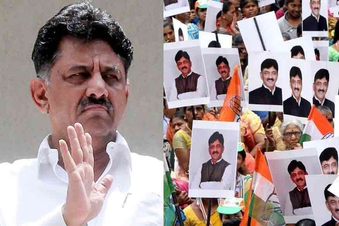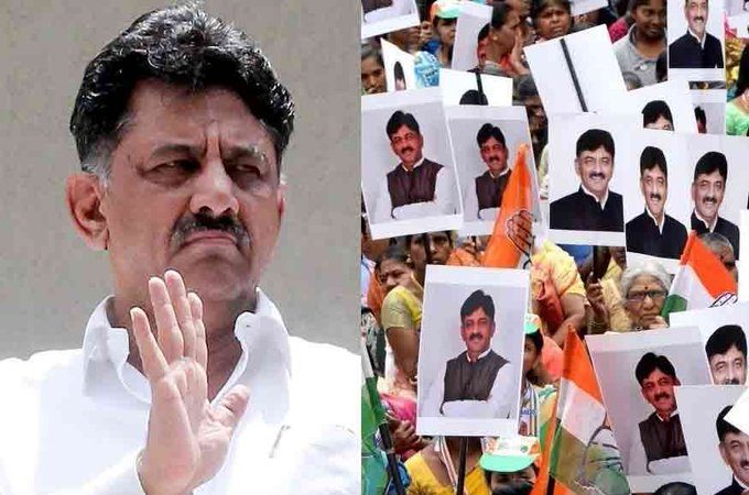 ಮಾಜಿ ಸಚಿವ ಡಿ.ಕೆ.ಶಿವಕುಮಾರ್ ಬಂಧನ ಖಂಡಿಸಿ ಪ್ರತಿಭಟನೆ ವಿಚಾರ.