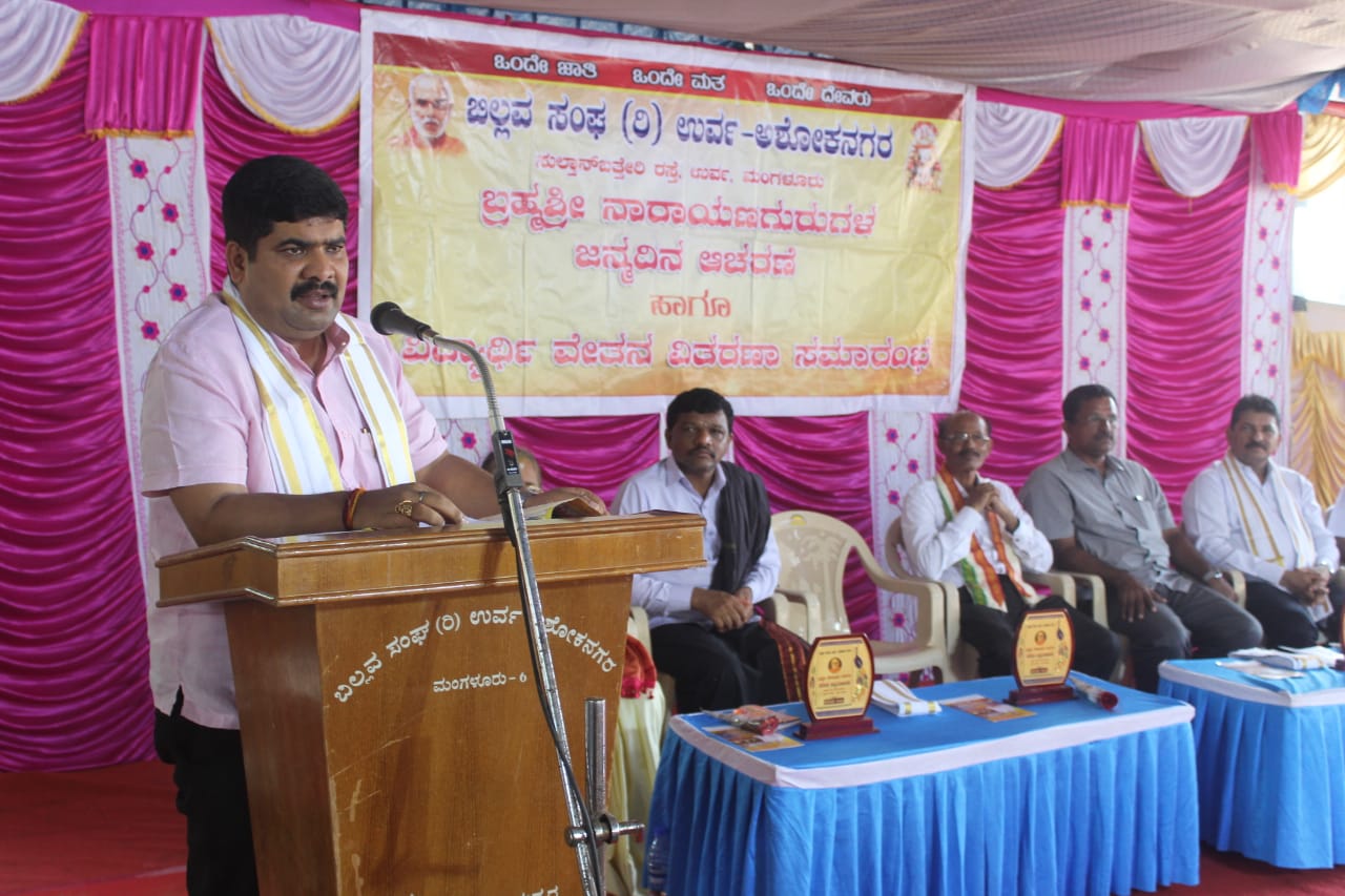 ಮುಖ್ಯ ಅತಿಥಿಯಾಗಿ ಆಗಮಿಸಿದ್ದ ಶಾಸಕ ಕಾಮತ್ ಅವರು ಮಾತನಾಡಿ, ಒಂದೇ ಜಾತಿ,ಒಂದೇ ಮತ, ಒಬ್ಬನೇ ದೇವರು ಎನ್ನುವ ಮಂತ್ರದೊಂದಿಗೆ ಜಗತ್ತಿಗೆ ಬೆಳಕು ತುಂಬಿದವರು ನಾರಾಯಣ ಗುರುಗಳು. ಮೇಲು ಕೀಳೆಂಬ ಭೇದವನ್ನು ತೊಡೆದು ಐಕ್ಯತೆಯ ಸಾರವನ್ನು ಜಗತ್ತಿಗೆ ಪಸರಿಸಿದ ಒಬ್ಬ ಶ್ರೇಷ್ಠ ಸಂತ ಎಂದರು. ಇನ್ನೋರ್ವ ಮುಖ್ಯ ಅತಿಥಿಯಾಗಿ ಆಗಮಿಸಿದ ಜಯಂತ ನಡುಬೈಲು ಮಾತನಾಡಿ ಹಿಂದುಳಿದ ನಾರಾಯಣ ಗುರುಗಳು ವರ್ಗಗಳ ಜನತೆಯ ಅಭ್ಯುದಯಕ್ಕಾಗಿ ತಮ್ಮ ಜೀವನವನ್ನೇ ಮುಡಿಪಾಗಿಟ್ಟ ಮಹಾನ್ ಚೇತನ ಎಂದರು. ಕಾರ್ಯಕ್ರಮದಲ್ಲಿ ಆತ್ಮಶಕ್ತಿ ವಿವಿದ್ಧೋದ್ದೇಶ ಸಹಕಾರ ಸಂಘದ ಅಧ್ಯಕ್ಷರಾದ ಶ್ರೀ ಚಿತ್ತರಂಜನ್ ಬೋಳಾರ ಮತ್ತು ಎಚ್ ಎಸ್ ರಾಘವೇಂದ್ರ ಅವರು ಹಲವಾರು ವರ್ಷಗಳಿಂದ ಮಾಡುತ್ತಿರುವ ಸಮಾಜ ಸೇವೆಯನ್ನು ಗುರುತಿಸಿ ಅವರನ್ನು ಸನ್ಮಾನಿಸಲಾಯಿತು.