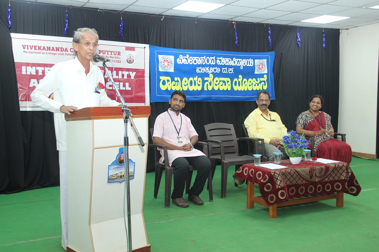 ಅವರು ವಿವೇಕಾನಂದ ಕಾಲೇಜಿನ ಐಕ್ಯುಎಸಿ ಹಾಗೂ ರಾಷ್ಟ್ರೀಯ ಸೇವಾ ಯೋಜನೆಯ ಸಹಯೋಗದಲ್ಲಿ ನಡೆದ 50ನೇ ವರ್ಷದ ರಾಷ್ಟ್ರೀಯ ಸೇವಾ ಯೋಜನಾ ದಿನಾಚರಣೆ ಕಾರ್ಯಕ್ರಮವನ್ನು ಉದ್ಘಾಟಿಸಿ ಬುಧವಾರ ಮಾತನಾಡಿದರು.