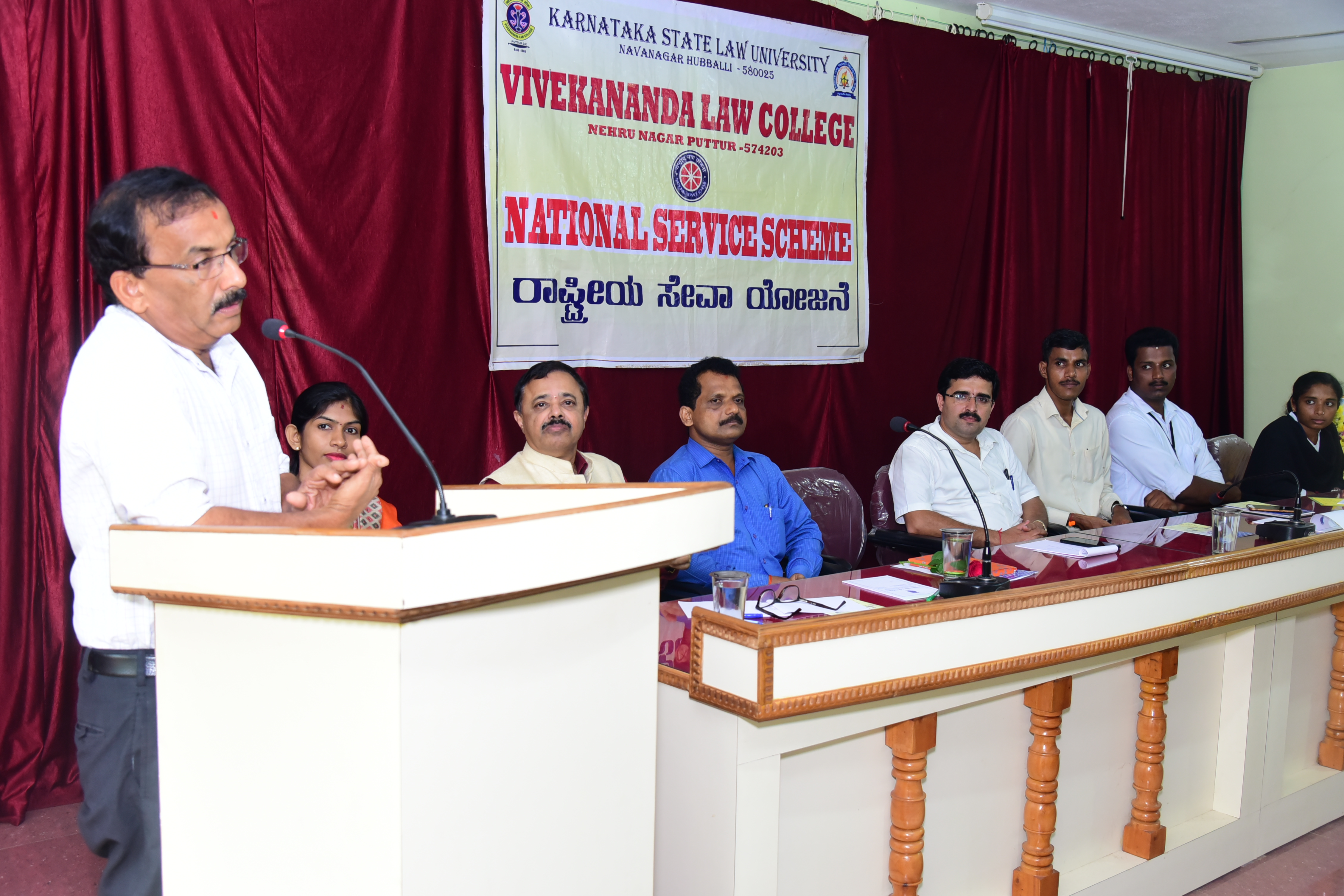 ಇವರು ವಿವೇಕಾನಂದ ಕಾನೂನು ಕಾಲೇಜಿನಲ್ಲಿ ರಾಷ್ಟ್ರೀಯ ಸೇವಾ ಯೋಜನೆಯ ಸುವರ್ಣ ಮಹೋತ್ಸವದ ಪ್ರಯುಕ್ತ ನಡೆದ ಕಾರ್ಯಾಗಾರವನ್ನು ಉದ್ಘಾಟಿಸಿ ಮಾತನಾಡಿ, ರಾಷ್ಟ್ರೀಯ ಸೇವಾ ಯೋಜನೆಯು ವಿದ್ಯಾರ್ಥಿಗಳಲ್ಲಿ ಮಾನವೀಯ ಮೌಲ್ಯಗಳನ್ನು ತುಂಬುತ್ತದೆ. ಇದರಿಂದ ಯುವಜನತೆ ಮಾನವೀಯ ಸಂಬಂಧಗಳನ್ನು ತಮ್ಮ ಜೀವನದಲ್ಲಿ ಗಟ್ಟಿಗೊಳಿಸಿಕೊಳ್ಳುತ್ತಾರೆ. ರಾಷ್ಟ್ರೀಯ ಸೇವಾ ಯೋಜನೆಯು ವಿದ್ಯಾರ್ಥಿಗಳನ್ನು ಸ್ವಾವಲಂಬಿಗಳಾನ್ನಾಗಿಸುತ್ತದೆ. ಮುಖ್ಯವಾಗಿ ರಾಷ್ಟ್ರೀಯ ಸೇವಾ ಯೋಜನೆಯ ವತಿಯಿಂದ ನಡೆಯುವ ವಾರ್ಷಿಕ ವಿಶೇಷ ಶಿಬಿರವು ಇಂತಹ ಅನೇಕ ವಿಚಾರಗಳನ್ನು ಕಲಿಸಿಕೊಡುತ್ತದೆ. ಒಟ್ಟಾರೆಯಾಗಿ ಇದು ವಿದ್ಯಾರ್ಥಿಗಳಿಗೆ ಮುಂದಿನ ಜೀವನದಲ್ಲಿ ಅನೇಕ ರೀತಿಯ ಅವಕಾಶಗಳನ್ನು ಒದಗಿಸಿಕೊಡುತ್ತದೆ ಎಂದು ಹೇಳಿದರು.