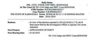 ಇದರ ಕುರಿತು ನ್ಯಾಯಾಲಯದಲ್ಲಿ ಮೊಕದಮ್ಮೆ ನಡೆಯುತ್ತಿತ್ತು. ಆ ‘ ಬಿ ‘ ರಿಪೋರ್ಟ್ಟನ್ನು ಮಾನ್ಯ ಹೊನ್ನಾವರ ನ್ಯಾಯಾಲಯವು ಇಂದು ಸರಿಯಲ್ಲವೆಂದು ವಜಾಗೊಳಿಸಿದೆ. ಇದು ಮಠದ ವಿರುದ್ದದ ಶಡ್ಯಂತ್ರಿಗಳಿಗೆ ಬಹುದೊಡ್ಡ ಹಿನ್ನಡೆಯಾಗಿದೆ.