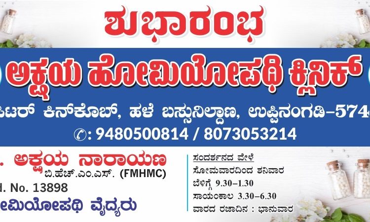 ಜೊತೆಗೆ ಅಕ್ಷಯ ಹೋಮಿಯೋಪಥಿ ಕ್ಲಿನಿಕ್ನ ಶುಭಾರಂಭಗೊಳ್ಳಲಿದೆ. ಜುಪಿಟರ್ ಕಿನ್ಕೊಬ್, ಹಳೆ ಬಸ್ಸುನಿಲ್ದಾಣ ಉಪ್ಪಿನಂಗಡಿಯಲ್ಲಿ ಕ್ಲಿನಿಕ್ ತೆರೆಯಲಾಗಿದೆ.
