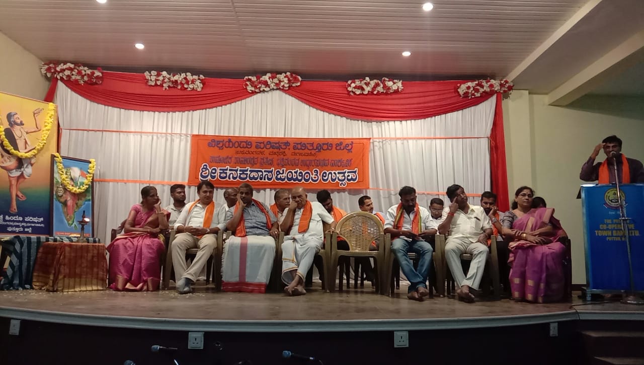 ವಿಶ್ವ ಹಿಂದೂ ಪರಿಷತ್ ಪುತ್ತೂರು, ಬಜರಂಗದಳ, ಮಾತೃಶಕ್ತಿ, ದುರ್ಗಾ ವಾಹಿನಿ ಸಾಮೂಹಿಕ, ಸಾಮರಸ್ಯದ ಪ್ರತೀಕ ಭಕ್ತಿಪಂಥದ ಉದ್ಧಾರ ಪಥದ ದಾರ್ಶನಿಕ ಶ್ರೀ ಕನಕದಾಸರ ಜಯಂತಿ ಉತ್ಸವ ಕಾರ್ಯಕ್ರಮವು ನಿನ್ನೆ ಟೌನ್ ಬ್ಯಾಂಕ್ ಸಭಾಂಗಣ, ಪುತ್ತೂರು ನಲ್ಲಿ ನಡೆಯಿತು.