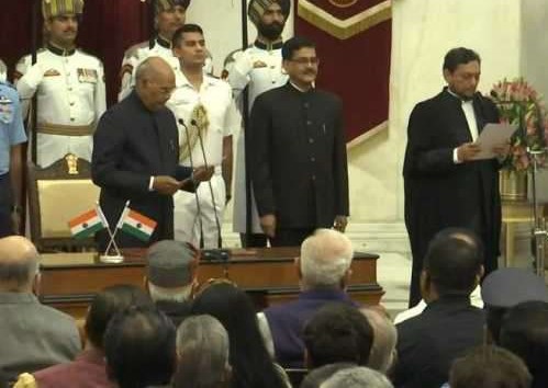 ರಾಷ್ಟ್ರಪತಿ ರಾಮನಾಥ್ ಕೋವಿಂದ್ ನ್ಯಾಯಮೂರ್ತಿ ಬೊಬ್ಡೆ ಅವರಿಗೆ ಅಧಿಕಾರ ಮತ್ತು ಗೌಪ್ಯತೆಯ ಪ್ರಮಾಣವಚನ ಬೋಧಿಸಿದರು.