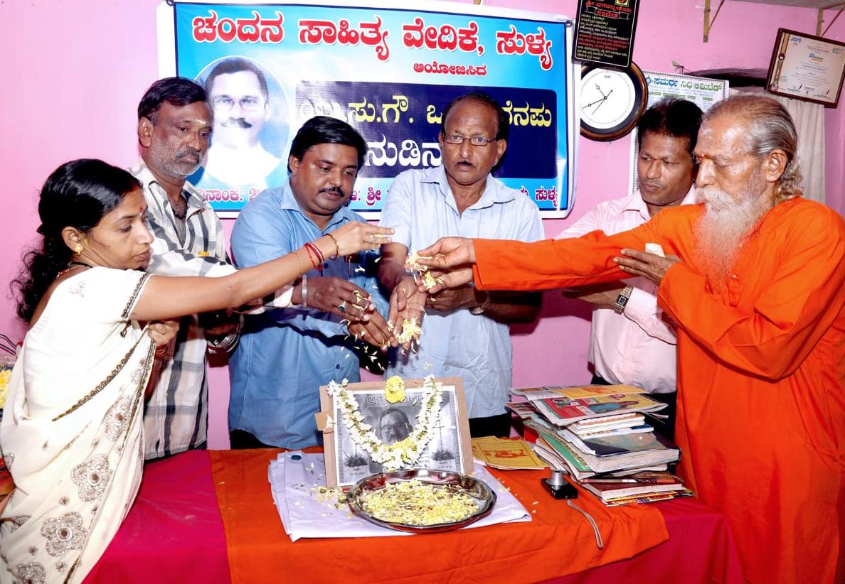 ಸುಳ್ಯ: ಸುಳ್ಯದ ಚಂದನ ಸಾಹಿತ್ಯ ವೇದಿಕೆ ವತಿಯಿಂದ ಇತ್ತೀಚಿಗೆ ದೈವಾಧೀನರಾದ ಸುಳ್ಯದ ಖ್ಯಾತ ಸಾಹಿತಿ ದಿ || ಯು .ಸುಬ್ರಾಯಗೌಡ ರವರಿಗೆ ನುಡಿನಮನ ಕಾರ್ಯಕ್ರಮವು ಶಿರ್ಡಿ ಶ್ರೀ ಸಾಯಿಬಾಬಾ ಜ್ಯೋತಿಷ್ಯಾಲಯದಲ್ಲಿ ನೆರವೇರಿತು . ಯುಸುಗೌ ಒಂದು ನೆನಪು ಮತ್ತು ನುಡಿನಮನ ಕಾರ್ಯಕ್ರಮದ ಅಧ್ಯಕ್ಷತೆಯನ್ನು ಸುಳ್ಯದ ಚಂದನ ಸಾಹಿತ್ಯ ವೇದಿಕೆಯ ಅಧ್ಯಕ್ಷರಾದ ಎಚ್ .ಭೀಮರಾವ್ ವಾಷ್ಠರ್ ಕಾರ್ಯಕ್ರಮದ ವಹಿಸಿ ” ಅಂತಾರಾಷ್ಟ್ರೀಯ ಸಂಸ್ಥೆಯಾದ ಜೇಸಿಐ ಸಂಸ್ಥೆಯ ವಲಯ ತರಬೇತುದಾರರಲ್ಲದೆ ಅತ್ಯುತ್ತಮ ಸಾಹಿತಿಯಾಗಿದ್ದ ಯುಸುಗೌ ಪ್ರಬುದ್ಧ ಗಣ್ಯವ್ಯಕ್ತಿಯಾಗಿದ್ದರು . ಸರ್ವರನ್ನು ಆದರದಿಂದ ಕಾಣುವ ಅವರ ಹೃದಯ ವೈಶಾಲ್ಯತೆ ಅನುಕರಣೀಯ ” ಎಂದರು . ಹಿರಿಯ ಸಾಹಿತಿ ನೀನಾಸು ರವರು ” ಯುಸುಗೌ ಮರೆಯದ ಮಾಣಿಕ್ಯ . ಸಾಹಿತ್ಯ ಕ್ಷೇತ್ರದಲ್ಲಿ ಒಳ್ಳೆಯ ಛಾಪನ್ನು ಮೂಡಿಸಿದವರು . ಉತ್ತಮ ಗೆಳೆಯರಾಗಿದ್ದ ಅವರು ಎಂದೂ ಕೋಪತಾಪ ಮಾಡಿದವರಲ್ಲ . ಒಬ್ಬ ಒಳ್ಳೆಯ ಸಾಹಿತಿಯನ್ನು ಕಳೆದುಕೊಂಡೆವು ” ಎಂದು ಮರುಗಿದರು . ಶ್ರೀ ಯೋಗೇಶ್ವರಾನಂದ ಸ್ವಾಮೀಜಿಯವರು ” ಒಡನಾಡಿಯಾಗಿದ್ದ ಸುಬ್ರಾಯಗೌಡರು ತುಂಬಿದ ಕೊಡ . ವಿಶೇಷ ಶೈಲೀಯ ಅವರ ಬರಹಗಳು ಜನಮಾನಸ ಮುಟ್ಟಿದ್ದವು .ಅವರ ಅರೆಭಾಷೆ ಲೇಖನಗಳು ಹಲವು ಪತ್ರಿಕೆಗಳಲ್ಲಿ ಓದಿದ್ದೆ . ಅವರ ಆತ್ಮಕ್ಕೆ ಭಗವಂತ ಚಿರಶಾಂತಿ ನೀಡಲಿ ” ಎಂದು ಪ್ರಾರ್ಥಿಸಿದರು . ಚಂದನ ಸಾಹಿತ್ಯ ವೇದಿಕೆ ಕಾರ್ಯದರ್ಶಿ ಸುಮಂಗಲಾ ಲಕ್ಷ್ಮಣ ಕೋಳಿವಾಡ , ವಿಷ್ಣುವರ್ಧನ್ ಅಭಿಮಾನಿ ಬಳಗದ ಅಧ್ಯಕ್ಷ ಹರೀಶ್ಚಂದ್ರ ಪಂಡಿತ್ ಹಾಗೂ ಖ್ಯಾತ ಗಾಯಕ ಗಣೇಶ್ ಬಿ ಎಸ್ ರವರು ನುಡಿನಮನ ಸಲ್ಲಿಸಿದರು . ಒಂದು ನಿಮಿಷ ಮೌನ ಪ್ರಾರ್ಥನೆ ಮಾಡಿ ಭಾವಚಿತ್ರಕ್ಕೆ ಪುಷ್ಪಾರ್ಚನೆ ಮಾಡುವದರ ಮೂಲಕ ಶ್ರದ್ಧಾಂಜಲಿ ಅರ್ಪಿಸಲಾಯಿತು .ಇದೇ ಸಂದರ್ಭ ಸ್ವಾಮೀಜಿಯವರ 163 ನೇ ಪುಸ್ತಕವಾದ ಜೀವದ ಪಯಣ ಸಾಹಿತ್ಯ ಕೃತಿ ಬಿಡುಗಡೆ ಮಾಡಲಾಯಿತು .