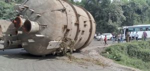 ಸಕಲೇಶಪುರ : ಶಿರಾಡಿ ಘಾಟ್ ರಸ್ತೆಯಲ್ಲಿ ದೋಣಿಗಲ್ಲು ಎಂಬಲ್ಲಿ ರಾಷ್ಟ್ರಿಯ ಹೆದ್ದಾರಿ 75 ರಲ್ಲಿ ನ. 30 ರಂದು ಟ್ಯಾಂಕರ್ ಒಂದು ಮಗುಚಿ ಬಿದ್ದಿದ್ದು, ರಸ್ತೆ ಸಂಚಾರಕ್ಕೆ ತೊಂದರೆಯುಂಟಾಗಿದೆ. ವಾಹನ ಚಾಲಕರ ಹಾಗೂ ಪ್ರಯಾಣಿಕರ ಪರದಾಡುವ ಸ್ಥಿತಿ ನಿರ್ಮಾಣವಾಗಿದೆ.