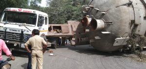 ಮಧ್ಯಾಹ್ನ ಸುಮಾರು 2 ಗಂಟೆಗೆ ಮಗುಚಿ ಬಿದ್ದ ಟ್ಯಾಂಕರ್, ಸರತಿ ಸಾಲಿನಲ್ಲಿ ನಿಂತ ವಾಹನಗಳು,