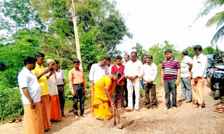 ಬರಿಮಾರು ಗ್ರಾಮದ ಮಾಣಿ ,ಮುಂಡೇವು ಷಾರ್ಪಜೆ ರಸ್ತೆಗೆ ಕಾಂಕ್ರಿಟೀಕರಣಕ್ಕೆ ಸ್ಥಳೀಯ ಜಿಲ್ಲಾ ಪಂಚಾಯತ್ ಸದಸ್ಯೆ ಶ್ರೀಮತಿ ಕಮಲಾಕ್ಷಿ ಇವರು 5ಲಕ್ಷ ಮಂಜೂರು ಮಾಡಿ ಶಿಲಾನ್ಯಾಸ ನೆರವೇರಿಸಿದರು-ಕಹಳೆ ನ್ಯೂಸ್