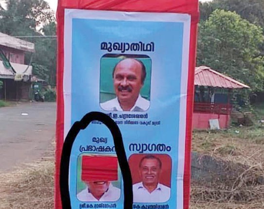 ಆದರೆ ಕಾಂಗ್ರೆಸ್ ಸಂಸದರಾಗಿರುವ ರಾಜ್ ಮೋಹನ್ ಉಣ್ಣಿತ್ತಾ ನ್, ಭಾವ ಚಿತ್ರಕ್ಕೆ ಬಣ್ಣ ಹಚ್ಚಿ ವಿಕ್ರತಗೊಳಿಸಿದ್ದಾರೆ. ಈ ಬಗ್ಗೆ ತೀವ್ರ ಆಕ್ರೋಶ ಕೇಳಿಬರುತ್ತಿದೆ.