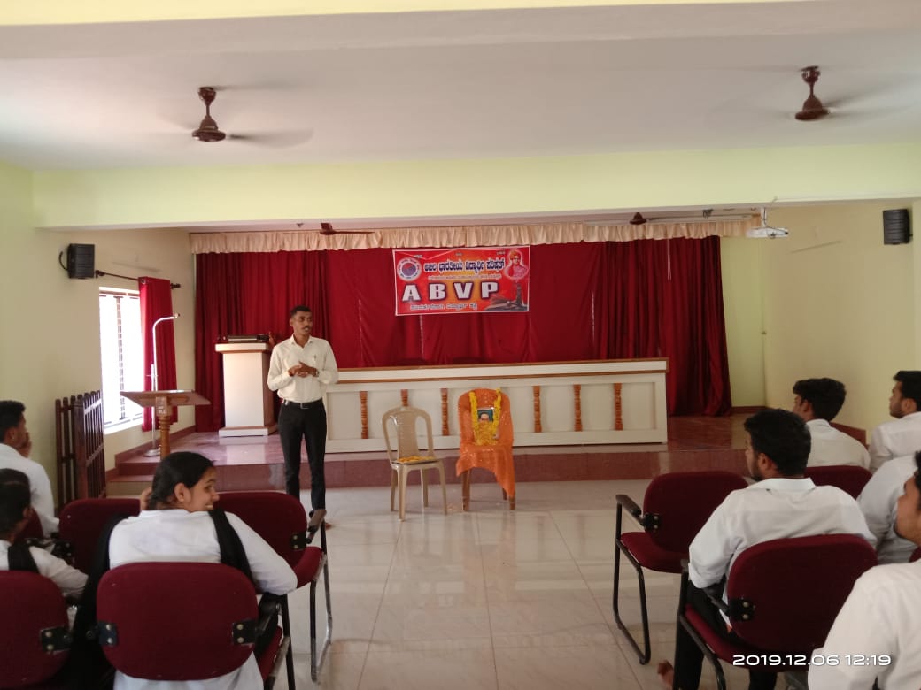 ನಂತರ ಅತಿಥಿಯಾಗಿ ಆಗಮಿಸಿದ ಉಪನ್ಯಾಸಕ ಶ್ರೀ ಕುಮಾರ್ ಶೇಣಿಯವರು ಅಂಬೇಡ್ಕರ್ ರವರ ಸಾಧನೆಗಳು, ಅಂಬೇಡ್ಕರ್ ರವರು ರಚಿಸಿರುವ ಸಂವಿಧಾನದ ಕುರಿತು,ಅವರ ವಿಚಾರಧಾರೆಯ ಕುರಿತು ಮಾತನಾಡಿದರು. ಅಂಬೇಡ್ಕರ್ ರವರ ಅಧ್ಯಯನ ಪ್ರವೃತ್ತಿ ನಮಗೆಲ್ಲ ಮಾದರಿಯಾಗಬೇಕೆಂದು ತಿಳಿಸಿದರು. ಕಾಲೇಜು ಘಟಕದ ABVP ನಾಯಕರುಗಳು ಮತ್ತು ಕಾರ್ಯಕರ್ತರು ಉಪಸ್ಥಿತರಿದ್ದರು.