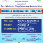 ಪುತ್ತೂರು: ಜೆ.ಸಿ.ಐ ಪುತ್ತೂರು ಇದರ ಸಹಯೋಗದೊಂದಿಗೆ ಇಂದು ಜೆಸಿಐ ಇಂಡಿಯಾ ನ್ಯಾಶನಲ್ ಇಂಟಿಗ್ರಿಟಿ ಡೇ ಸರ್ಕಾರಿ ಪದವಿ ಪೂರ್ವ ಕಾಲೇಜು ಕೊಂಬೆಟ್ಟು ಪುತ್ತೂರಿನಲ್ಲಿ ನಡೆಯಿತು.