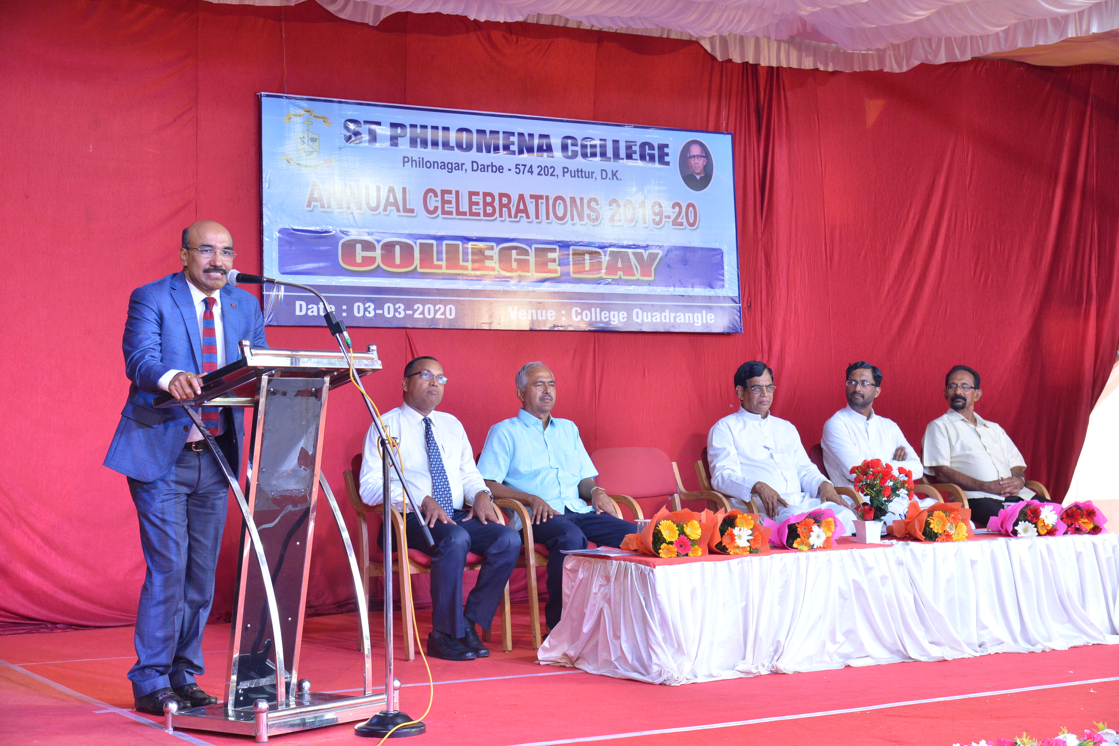 ಸಂತ ಫಿಲೋಮಿನಾ ಕಾಲೇಜಿನ ಪ್ರಾಂಗಣದಲ್ಲಿ ಆಯೋಜಿಸಲಾದ ವಾರ್ಷಿಕೋತ್ಸವ ಸಮಾರಂಭದಲ್ಲಿ ಮುಖ್ಯ ಅತಿಥಿಗಳಾಗಿ ಭಾಗವಹಿಸಿ, ಮಾತನಾಡಿದ ಅವರು, ಮಾನವನು ತನ್ನ ಜೀವಿತಾವಧಿಯಲ್ಲಿ ಮಾನವೀಯ ಗುಣಗಳನ್ನು ಸಂಪಾದನೆಗೆ ವಿಶೇಷ ಕಾಳಜಿ ವಹಿಸಬೇಕು. ಶಿಕ್ಷಣವು ವಿದ್ಯಾರ್ಥಿಗಳನ್ನು ಕೇವಲ ಪರೀಕ್ಷೆಗಳಿಗೆ ಸಿದ್ಧಗೊಳಿಸಿ, ಅಂಕ ಪಟ್ಟಿ ಗಳಿಕೆಯ ಪ್ರಕ್ರಿಯಾಗಿರಬಾರದು ಎಂದರು.