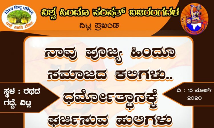 ವಿಶ್ವ ಹಿಂದೂ ಪರಿಷತ್ ಬಜರಂಗದಳ ವತಿಯಿಂದ ನಾಳೆ ವಿಟ್ಲದ ರಥಗದ್ದೆಯಲ್ಲಿ ವಿರಾಟ್ ಹಿಂದೂ ಸಮಾಜೋತ್ಸವವನ್ನ ಆಯೋಜಿಸಲಾಗಿತ್ತು.