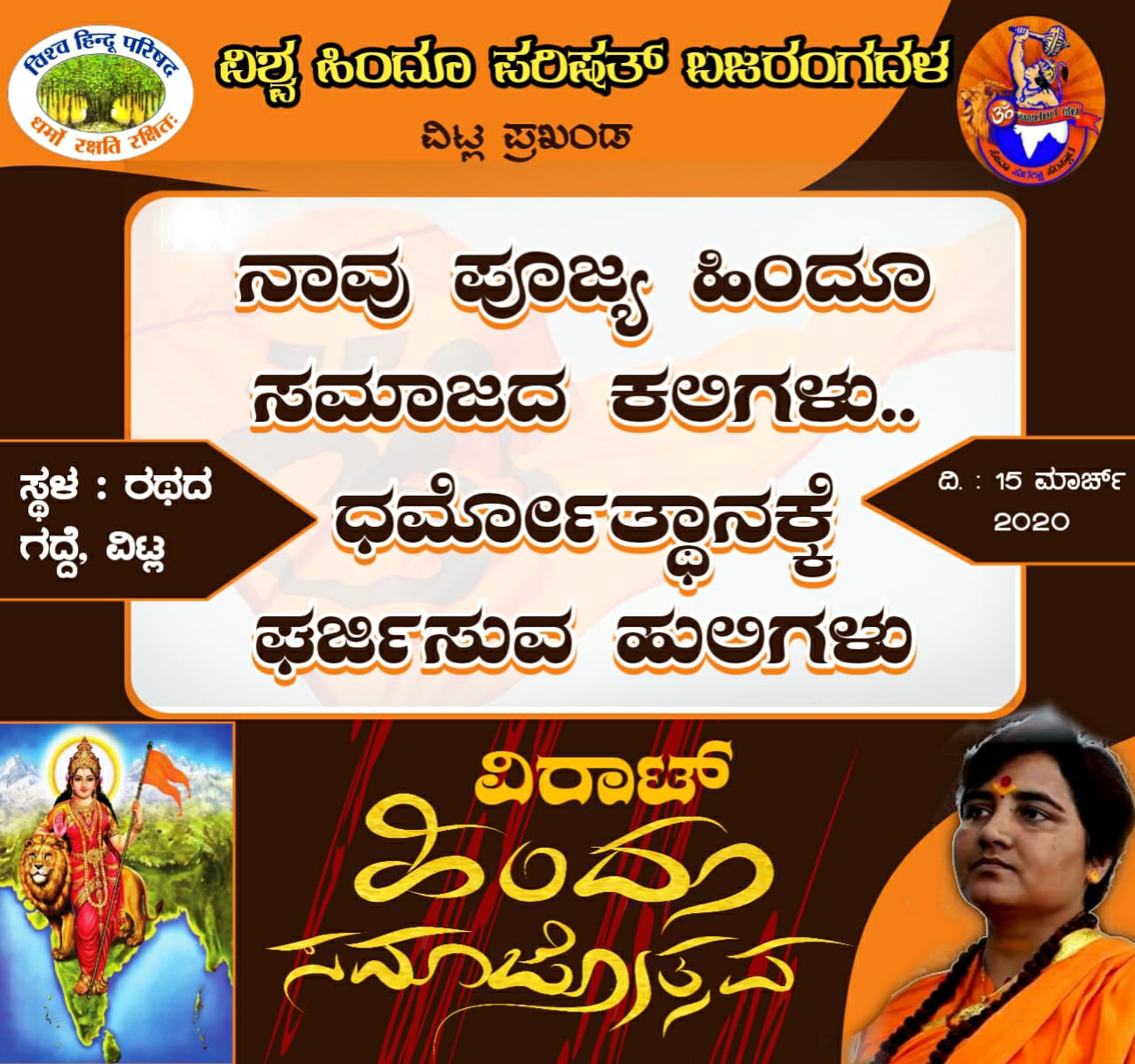ವಿಶ್ವ ಹಿಂದೂ ಪರಿಷತ್ ಬಜರಂಗದಳ ವತಿಯಿಂದ ನಾಳೆ ವಿಟ್ಲದ ರಥಗದ್ದೆಯಲ್ಲಿ ವಿರಾಟ್ ಹಿಂದೂ ಸಮಾಜೋತ್ಸವವನ್ನ ಆಯೋಜಿಸಲಾಗಿತ್ತು.