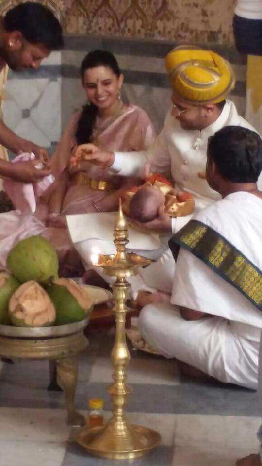 ಮೈಸೂರು ರಾಜಮನೆತನಕ್ಕೆ ರಾಜಕುಮಾರನ ಆಗಮನವಾದಾಗ ಇಡೀ ರಾಜ್ಯವೇ ಸಂಭ್ರಮ ಪಟ್ಟಿತ್ತು. ಇಂದು ಯದುವೀರ್ ತ್ರಿಷಿಕಾ ದಂಪತಿಯ ಮುದ್ದು ಕಂದನ ನಾಮಕರಣ ಸಮಾರಂಭದಲ್ಲಿ ರಾಜ ಕುಟುಂಬಸ್ಥರು ಭಾಗಿಯಾಗಿ ಯುವರಾಜನಿಗೆ ಶುಭ ಹಾರೈಸಿದರು. ಇನ್ನು ಮೈಸೂರು ಅರಮನೆ ಬಿಟ್ಟು ಬೆಂಗಳೂರು ಪ್ಯಾಲೇಸ್ ನಲ್ಲಿ ನಡೆದ ಸರಳ ನಾಮಕರಣ ಸಮಾರಂಭ ಎಲ್ಲರ ಹುಬ್ಬೇರಿಸಿತ್ತು. ಮಾಧ್ಯಮದವರಿಗೂ ಪ್ರವೇಶ ನಿರ್ಬಂಧಿಸಲಾಗಿತ್ತು. ಹತ್ತಿರದ ಸಂಬಂಧಿಗಳಷ್ಟೇ ಭಾಗಿಯಾಗಿದ್ರು.