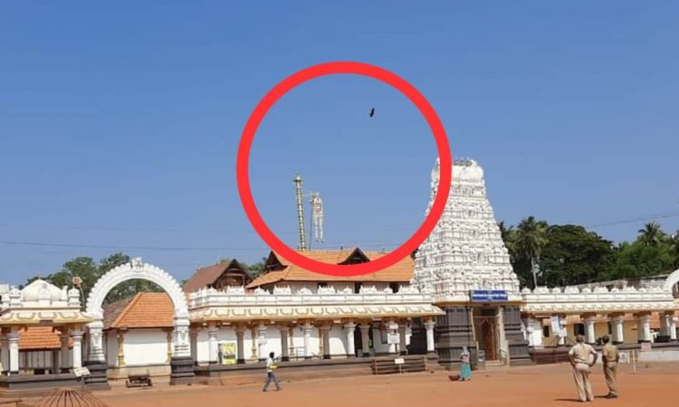 ಈ ಸಂದರ್ಭದಲ್ಲಿ ಗರುಡ ಧ್ವಜಸ್ಥಂಬಕ್ಕೆ ಪ್ರದಕ್ಷಿಣೆ ಮಾಡಿದೆ. ಈಗ ಆ ಪೋಟೋ ಸಾಮಾಜಿಕ ಜಾಲತಾಣದಲ್ಲಿ ವೈರಲ್ ಆಗುತ್ತಿದೆ.
