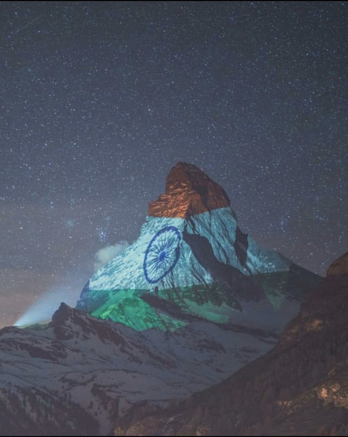 14,690 ಅಡಿ ಎತ್ತರದ ಪರ್ವತವನ್ನು ತ್ರಿವರ್ಣ ಧ್ವಜದ ಬಣ್ಣಗಳಿಂದ ಬೆಳಗಿಸಿದರು. ಸ್ವಿಡ್ಜರ್ಲೆಂಡ್ನ ಲೈಟ್ ಆರ್ಟಿಸ್ಟ್ ಗ್ಯಾರಿ ಹಾಪ್ಸ್ಟೇಟರ್ ಇದನ್ನು ಬೆಳಗಿಸುವ ಕೆಲಸ ಮಾಡಿದ್ದಾರೆ. ಭಾರತೀಯ ವಿದೇಶ ಸೇವೆಯ ಅಧಿಕಾರಿ ಹಾಗೂ ವಿಶ್ವ ವ್ಯಾಪಾರ ಸಂಘಟನೆಯಲ್ಲಿ ಭಾರತದ ದ್ವಿತೀಯ ಕಾರ್ಯದರ್ಶಿ ಗುರ್ಲೀನ್ ಈ ಸಂಬಂಧ ಟ್ವೀಟ್ ಮಾಡುತ್ತಾ ಕೋರೋನಾ ವಿರುದ್ಧ ಸಮರದಲ್ಲಿ ತಾನು ಭಾರತದೊಂದಿಗೆ ಇದ್ದೇನೆ ಎಂಬುವುದನ್ನು ಸ್ವಿಡ್ಜರ್ಲೆಂಡ್ ತೋರಿಸಿದೆ ಎಂದಿದ್ದಾರೆ.