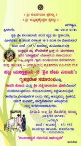 ಸದ್ರಿ ಗೃಹದ ಗೃಹಪ್ರವೇಶ ಸಮಾರಂಭವು ದಿನಾಂಕ 19.03.2018 ಸೋಮವಾರ, ಸಮಯ : ಪೂರ್ವಹ್ನ 7-01 ರ ವಿೂನಲಗ್ನ ಸುಮೂಹೂರ್ತದಲ್ಲಿ ಕಾಟುಕುಕ್ಕೆ ಅರೆಕ್ಕಾಡಿಯಲ್ಲಿ ಸಕಲ ಧಾರ್ಮಿಕ ವಿಧಿ ವಿಧಾನಗಳೊಂದಿಗೆ ನಡೆಯಲಿದೆ.