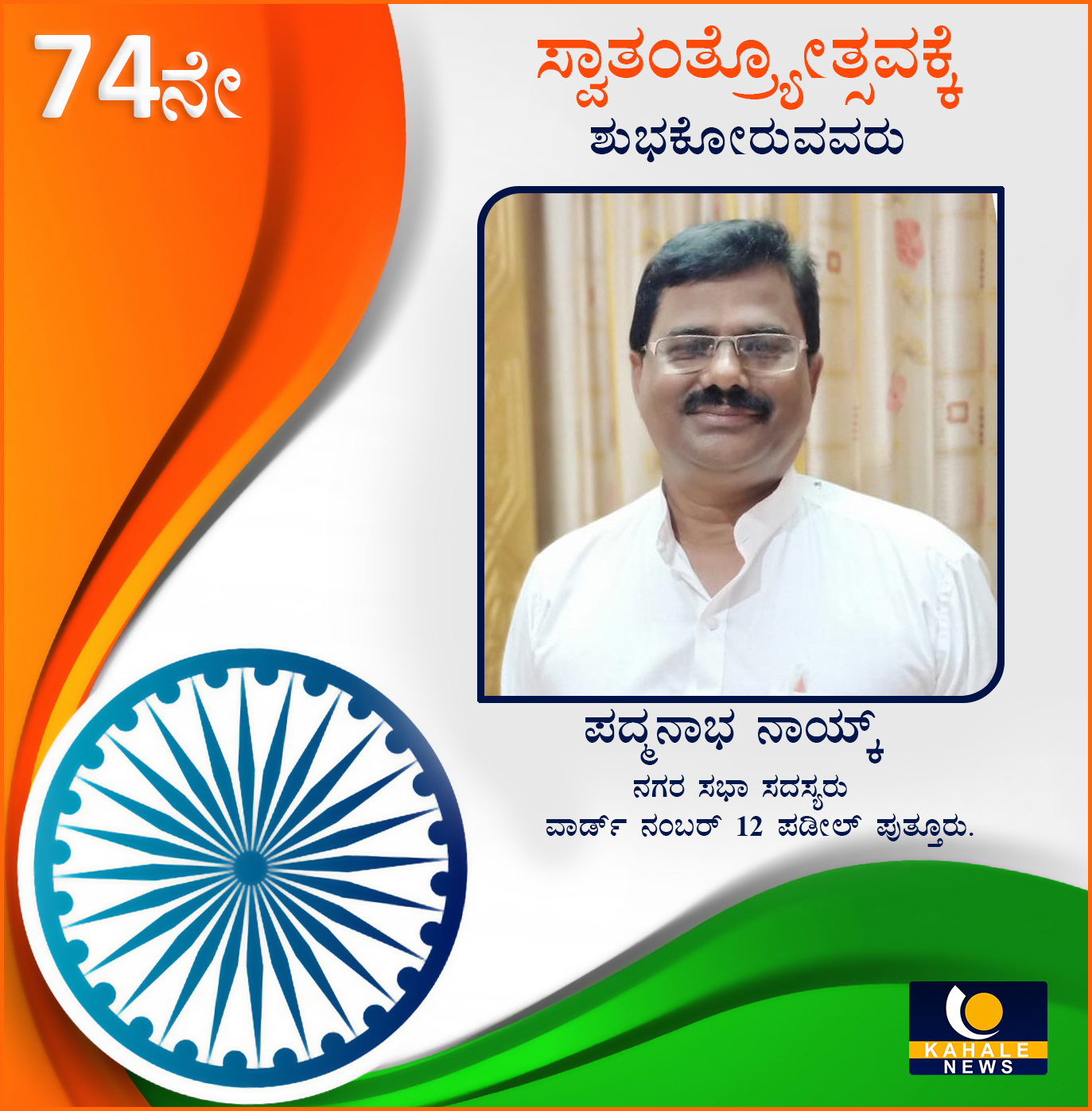 ನಾಡಿನ ಸಮಸ್ತ ಜನತೆಗೆ 74ನೇ ಸ್ವಾತಂತ್ರ್ಯೋತ್ಸವದ ಶುಭಾಶಯಗಳು ! ಪದ್ಮನಾಭ ನಾಯ್ಕ್- ಕಹಳೆ ನ್ಯೂಸ್