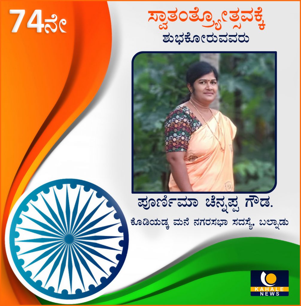 ನಾಡಿನ ಸಮಸ್ತ ಜನತೆಗೆ 74ನೇ ಸ್ವಾತಂತ್ರ್ಯೋತ್ಸವದ ಶುಭಾಶಯಗಳು ! ಪೂರ್ಣಿಮಾ ಚೆನ್ನಪ್ಪ ಗೌಡ- ಕಹಳೆ ನ್ಯೂಸ್